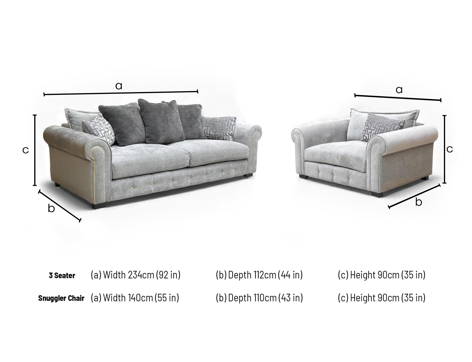 • The Furniture Village Alexander & James 'Sumptuous' 3 Seater Sofa + Snuggler in Dove is a luxurious and stylish addition to any living room.