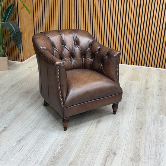- This leather accent tub chair has plenty of cool Chesterfield style.