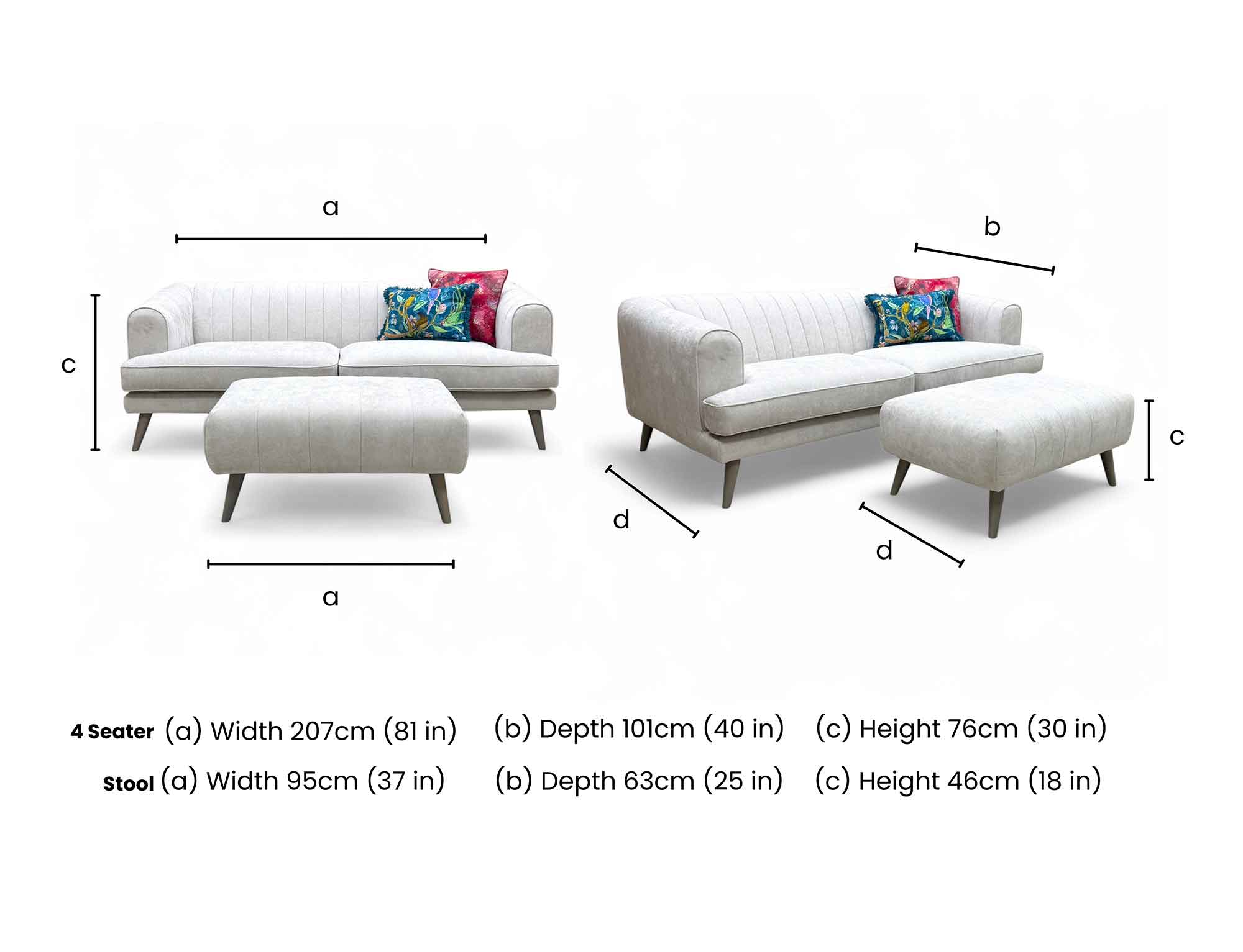 'Aurelia' Taupe Catalina 4 Seater Sofa with Bench Footstool