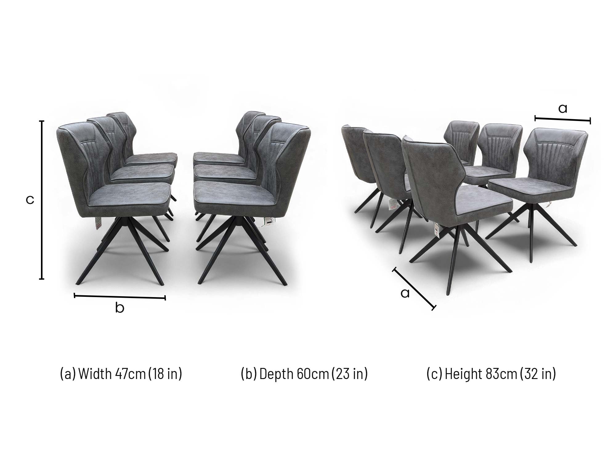‘Aydin’ Dark Grey Soft Faux Leather Swivel Dining Chair - Set of 6