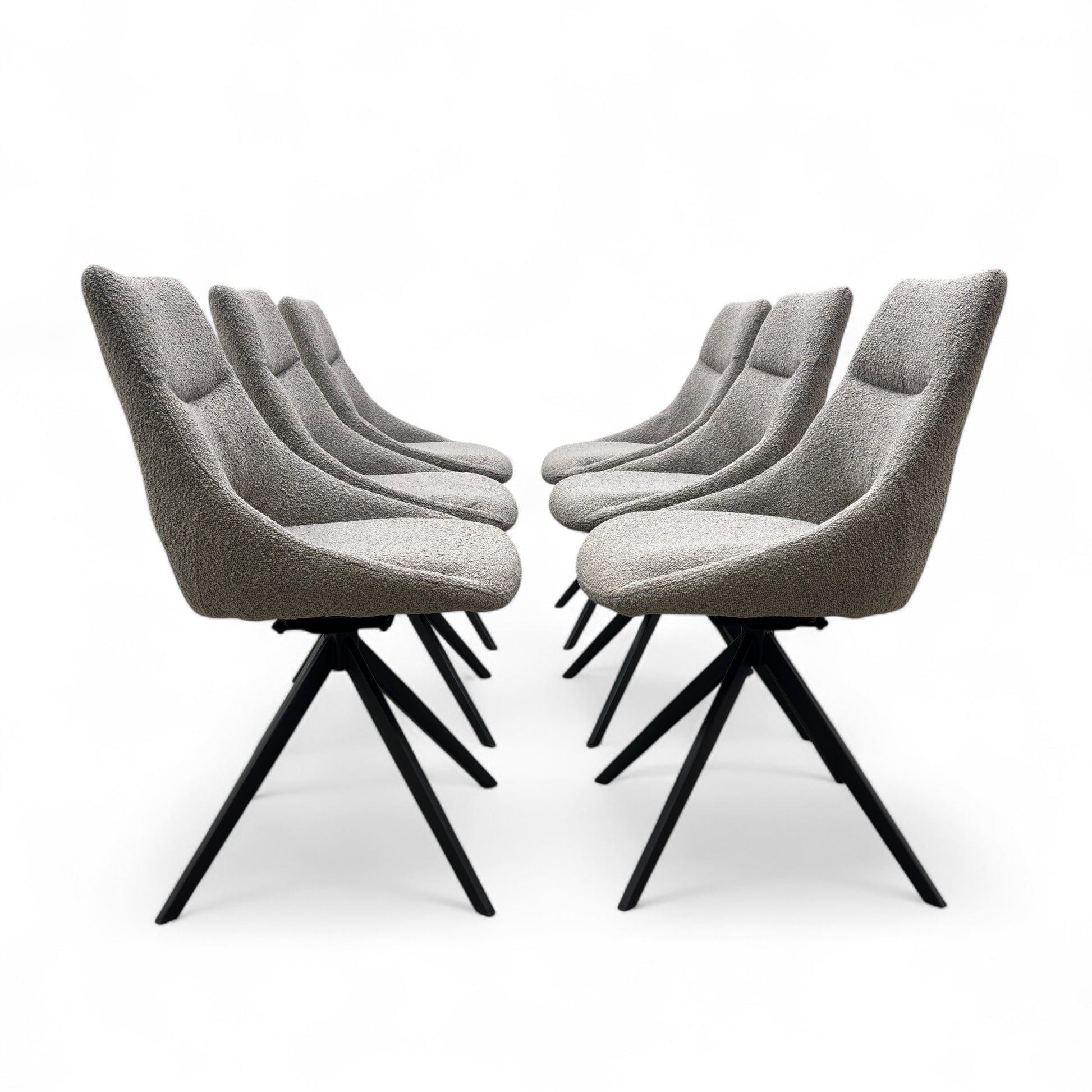 'Barefoot' Grey Boucle Swivel Dining Chair - Set of 6