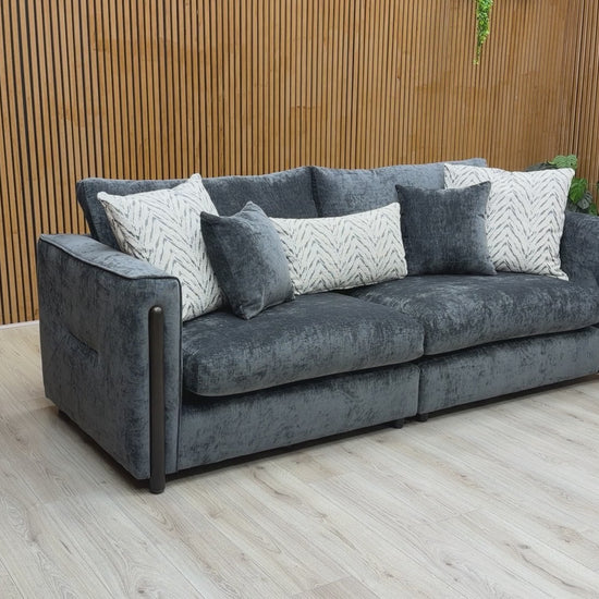 ‘Barney' Zurich Grey Celine Linen Fabric 4 Seater Classic Back Split Frame Sofa