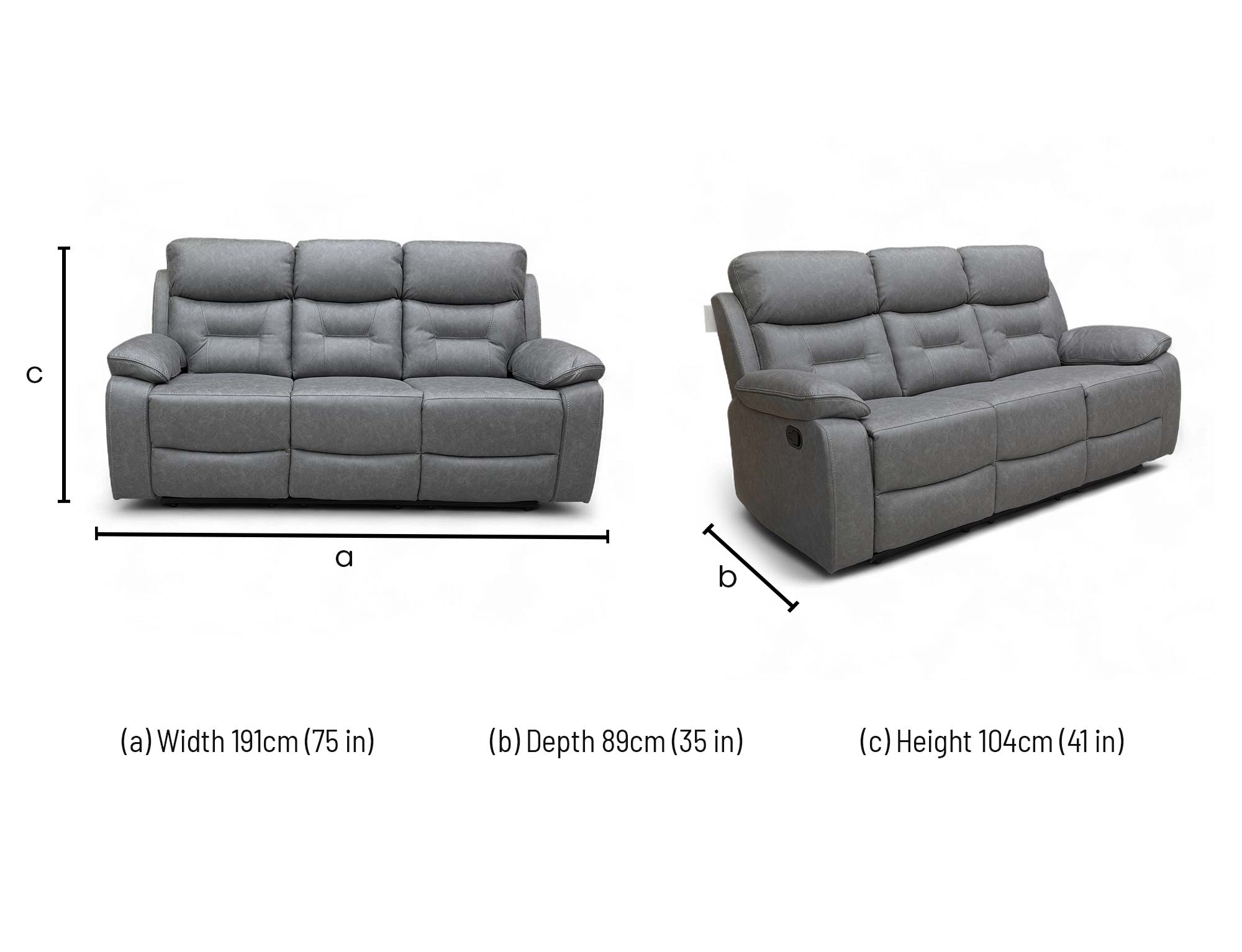 ‘Beaumont’ Grey Endurance Fabric Manual Recliner High Back 3 Seater Sofa
