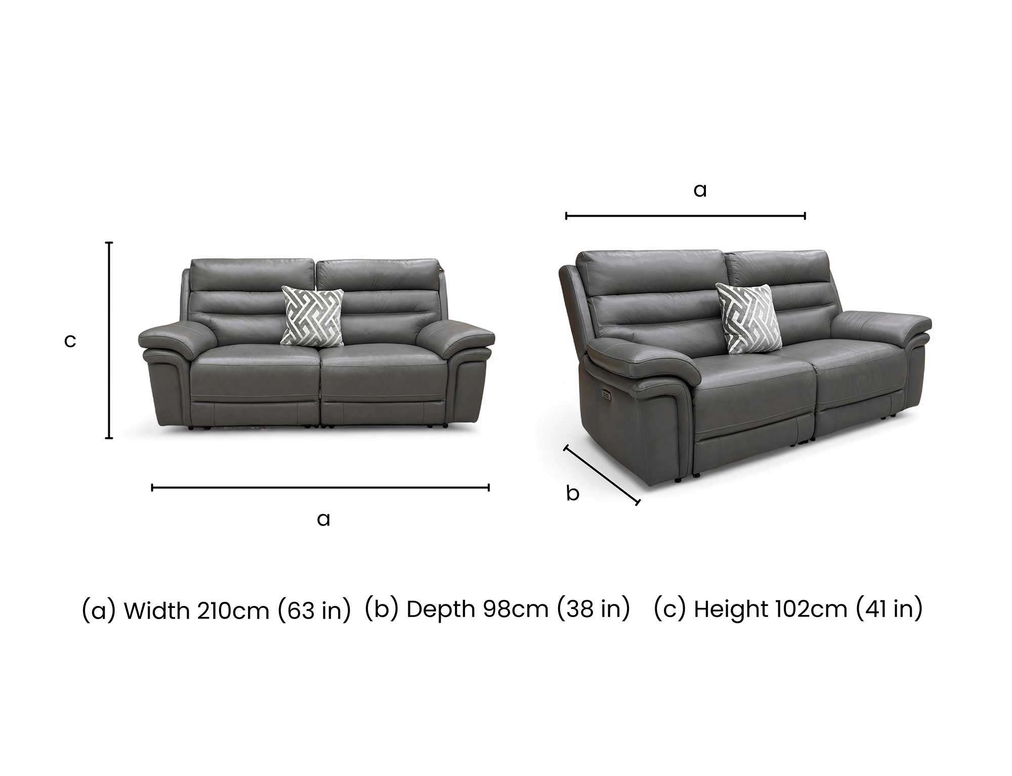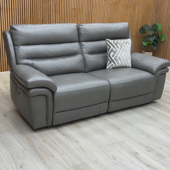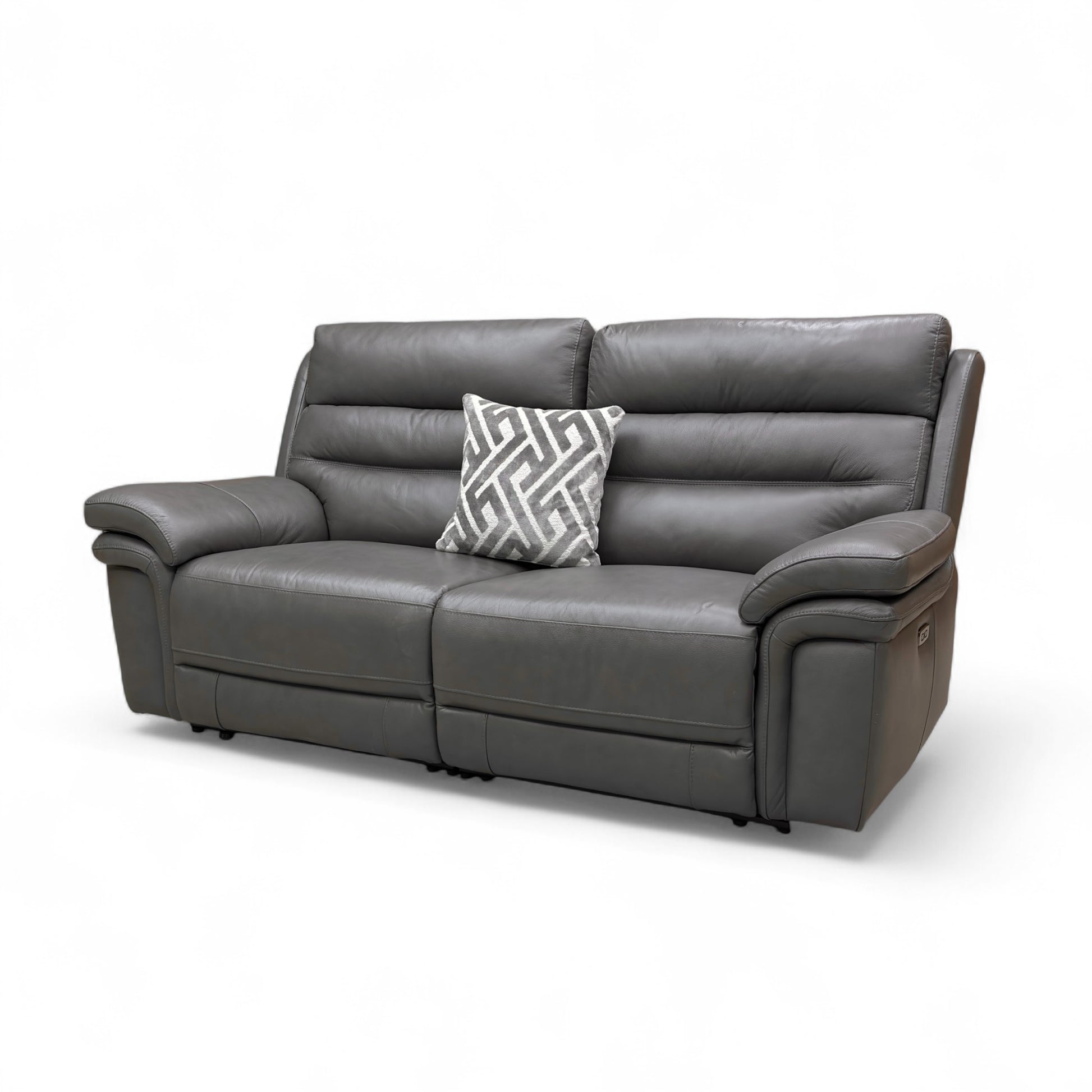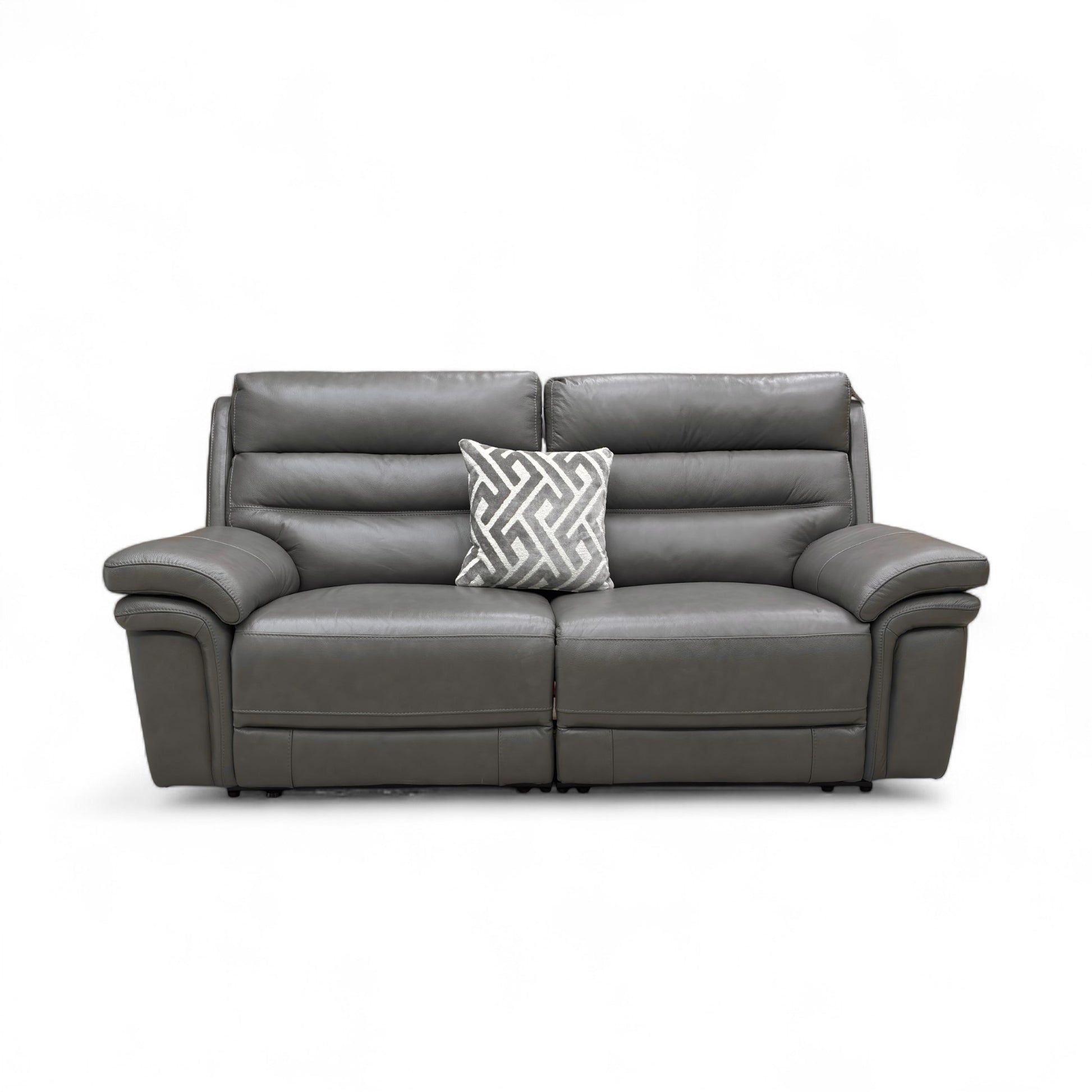 ‘Berlin' Grey Le-9308 Leather 3 Seater Power Recliner Sofa with Power Headrest