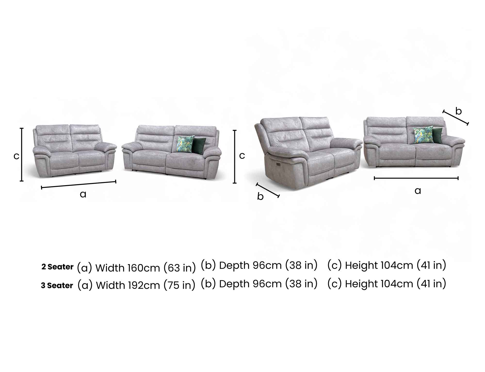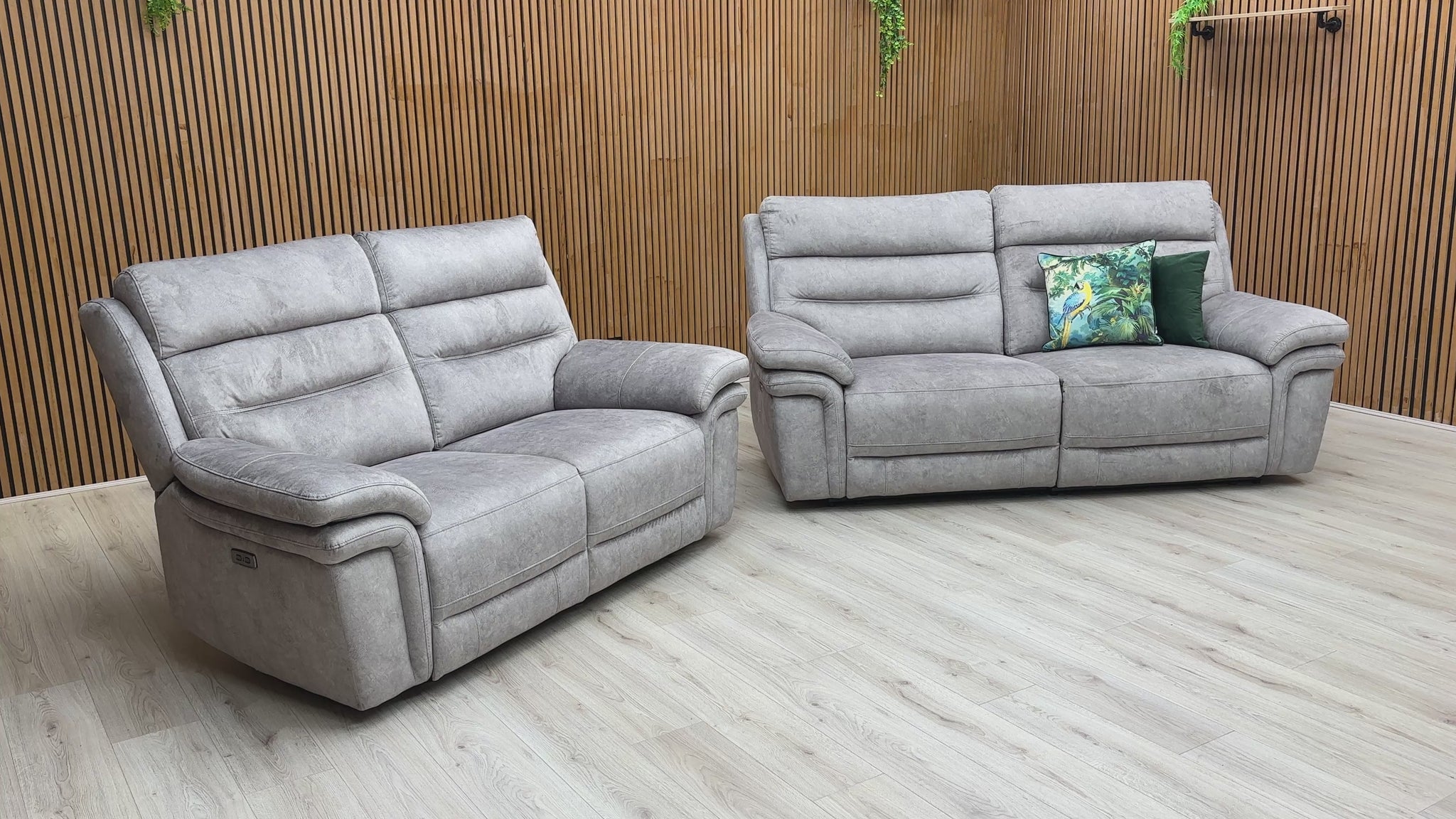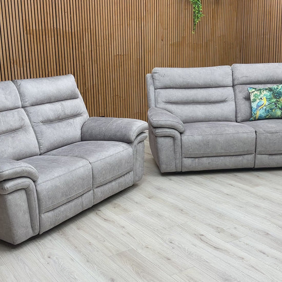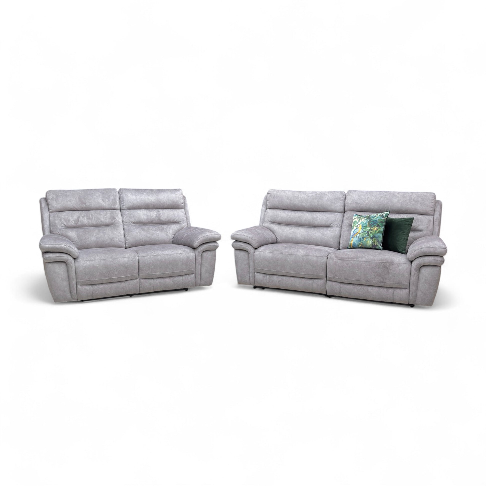 'Berlin’ Light Grey Be-0102 Dapple Velvet Power Recliner 3 + 2 Seater Sofa Set