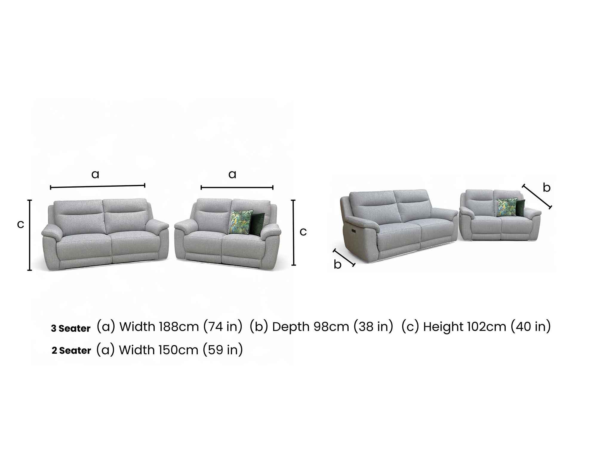 ‘Bobby' Florence Stone Grey 40501 Tight Weave Fabric 3 + 2 Seater Power Recliner Sofa Set