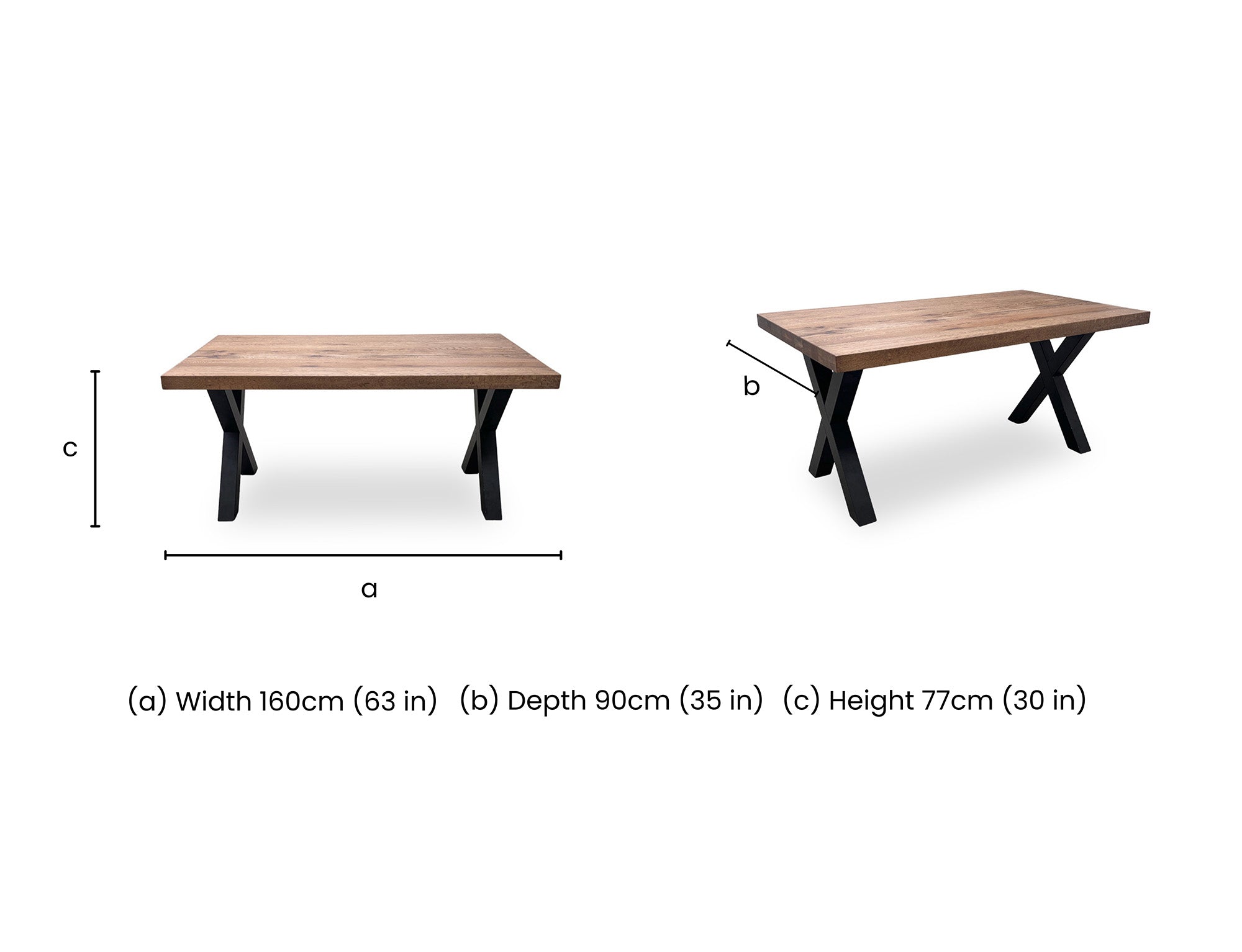 Bodahl Compact 'Terra' 04 Desert Solid Oak Straight Top 160cm Table with X-Shaped Metal Legs