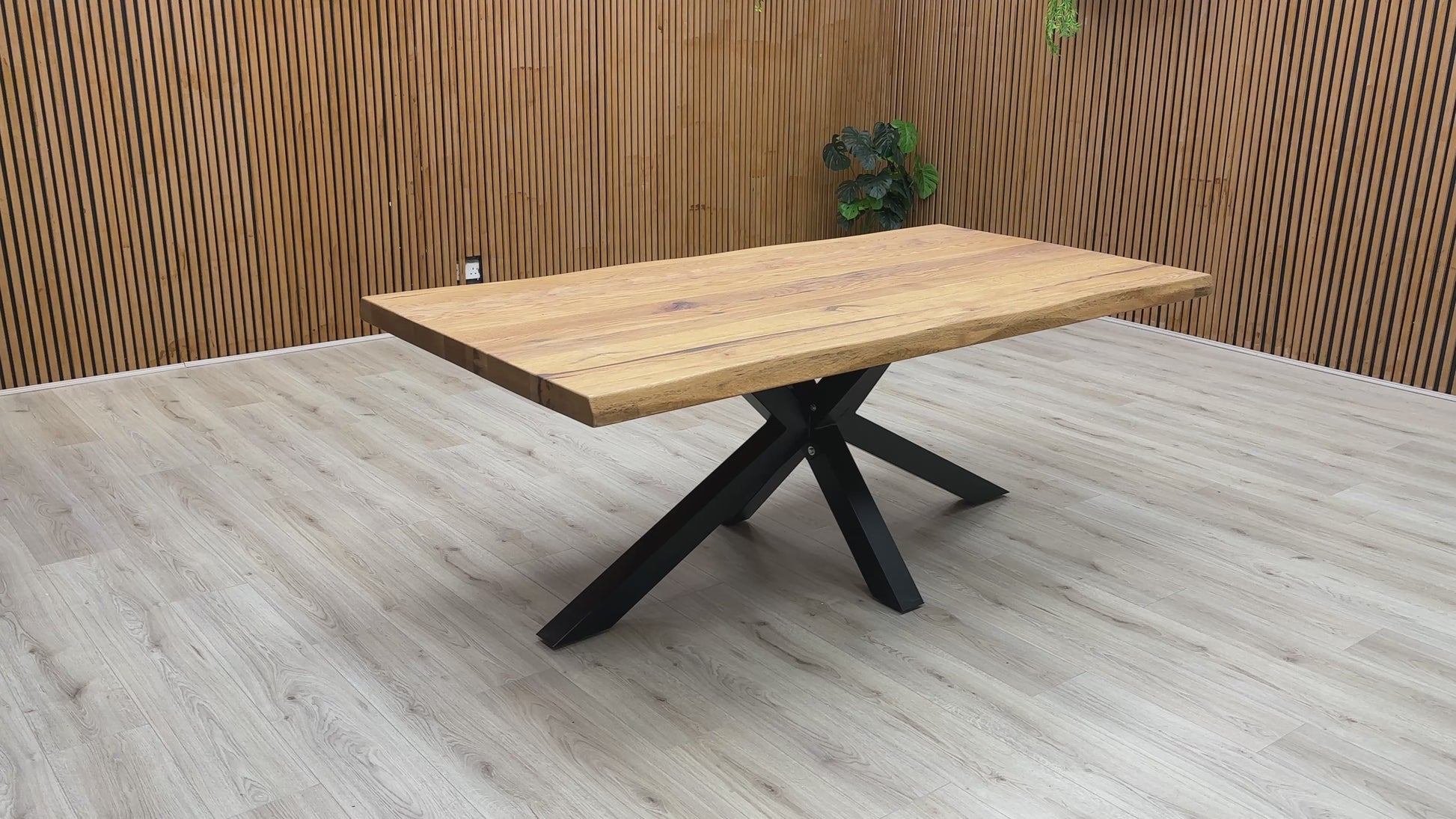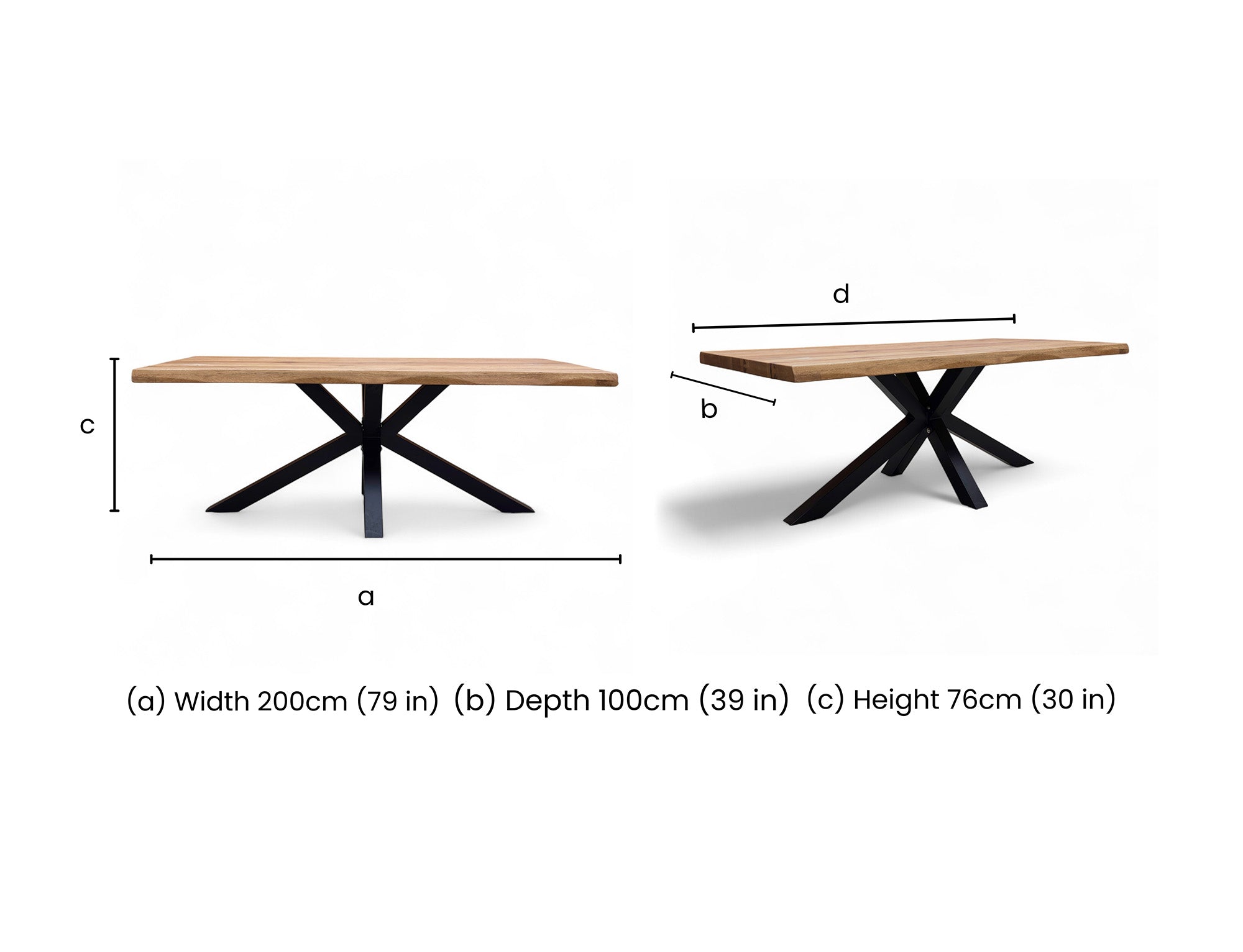 Bodahl 'Njord' 01 Oiled Solid Oak Raw Edge 200cm Dining Table with Metal Star Base