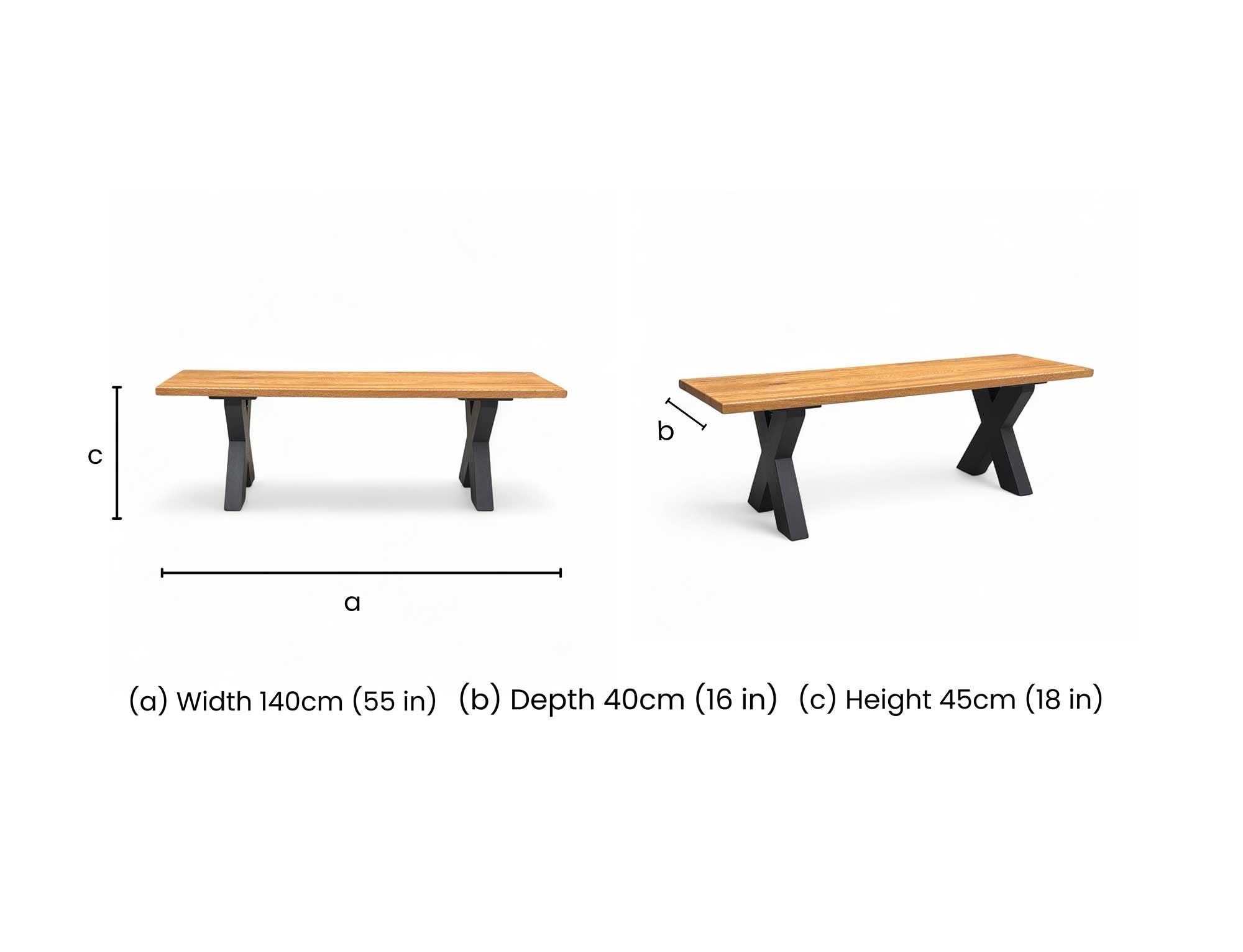 Bodahl ‘Terra’ 01 Oiled Solid Oak Compact 140cm Dining Bench with Metal X-Shaped Legs