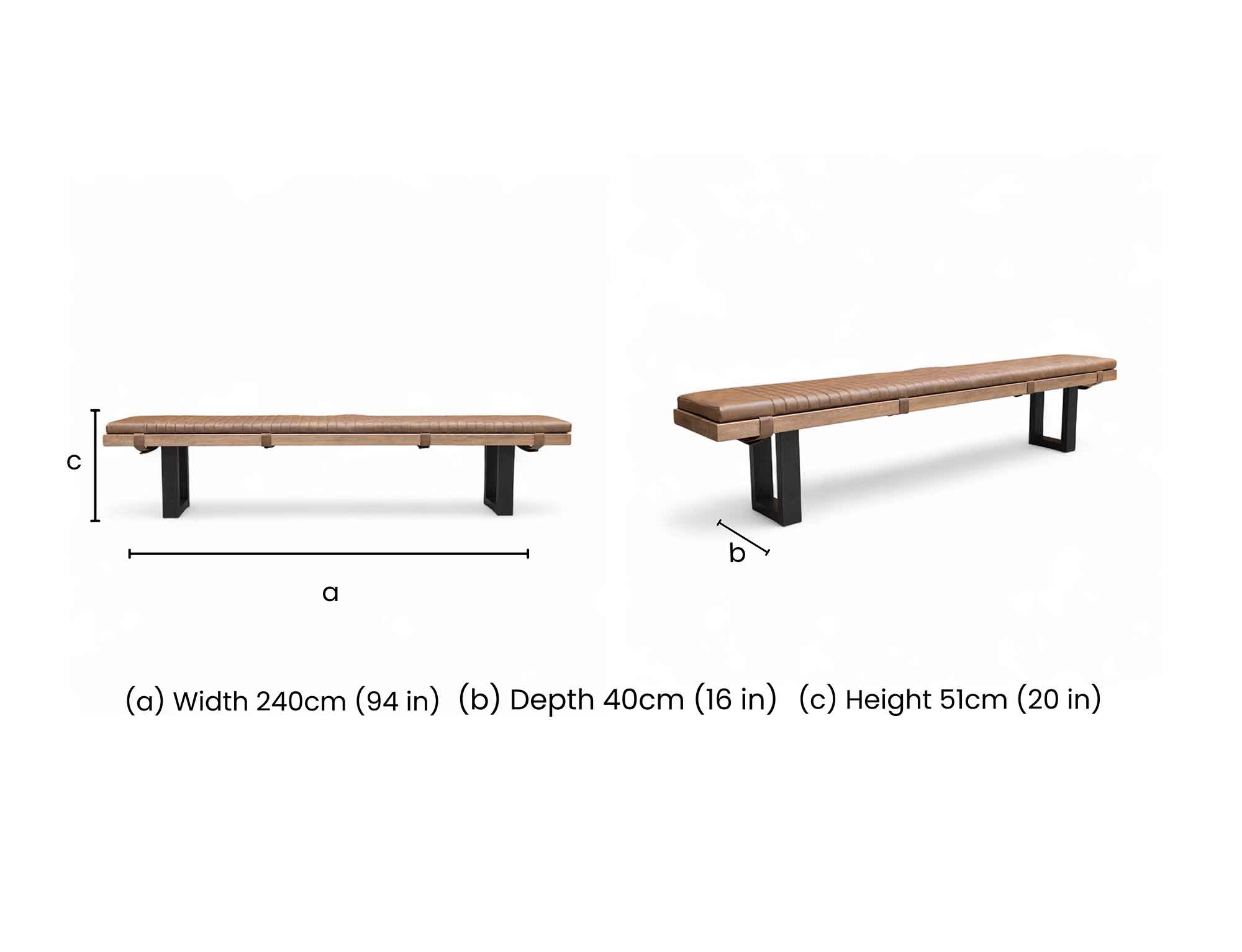 Bodahl ‘Terra' 04 Desert Solid Oak 240cm Dining Bench with Metal U-Shaped Legs + Cognac Bench Pad
