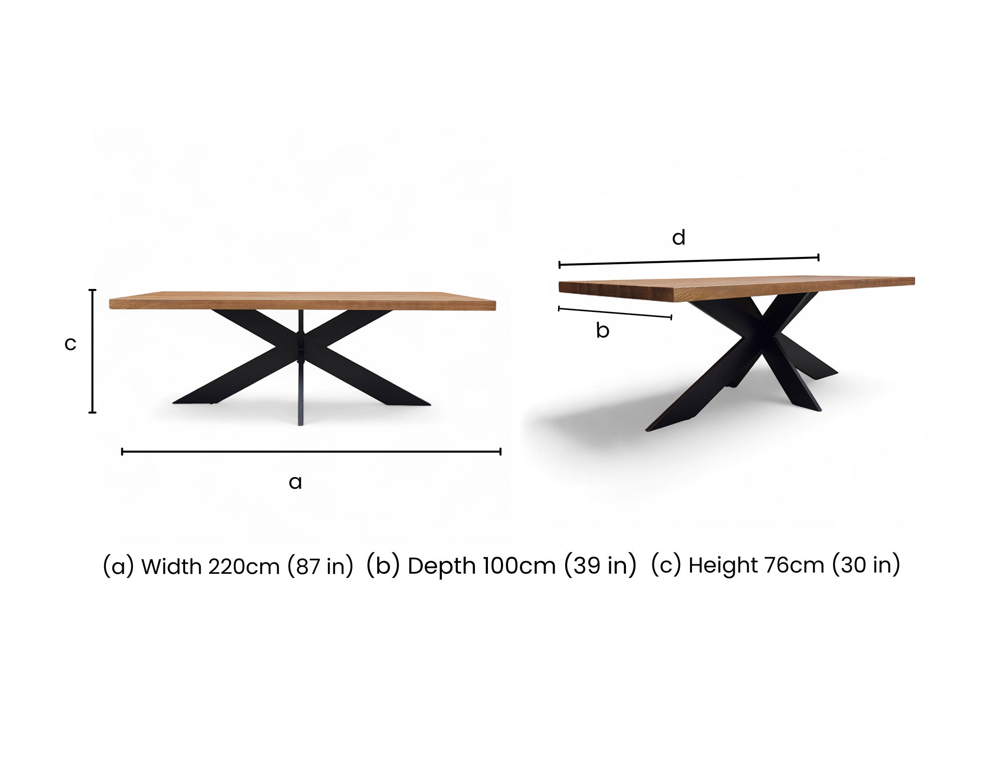 220 cm | 100 cm | 76 cm |