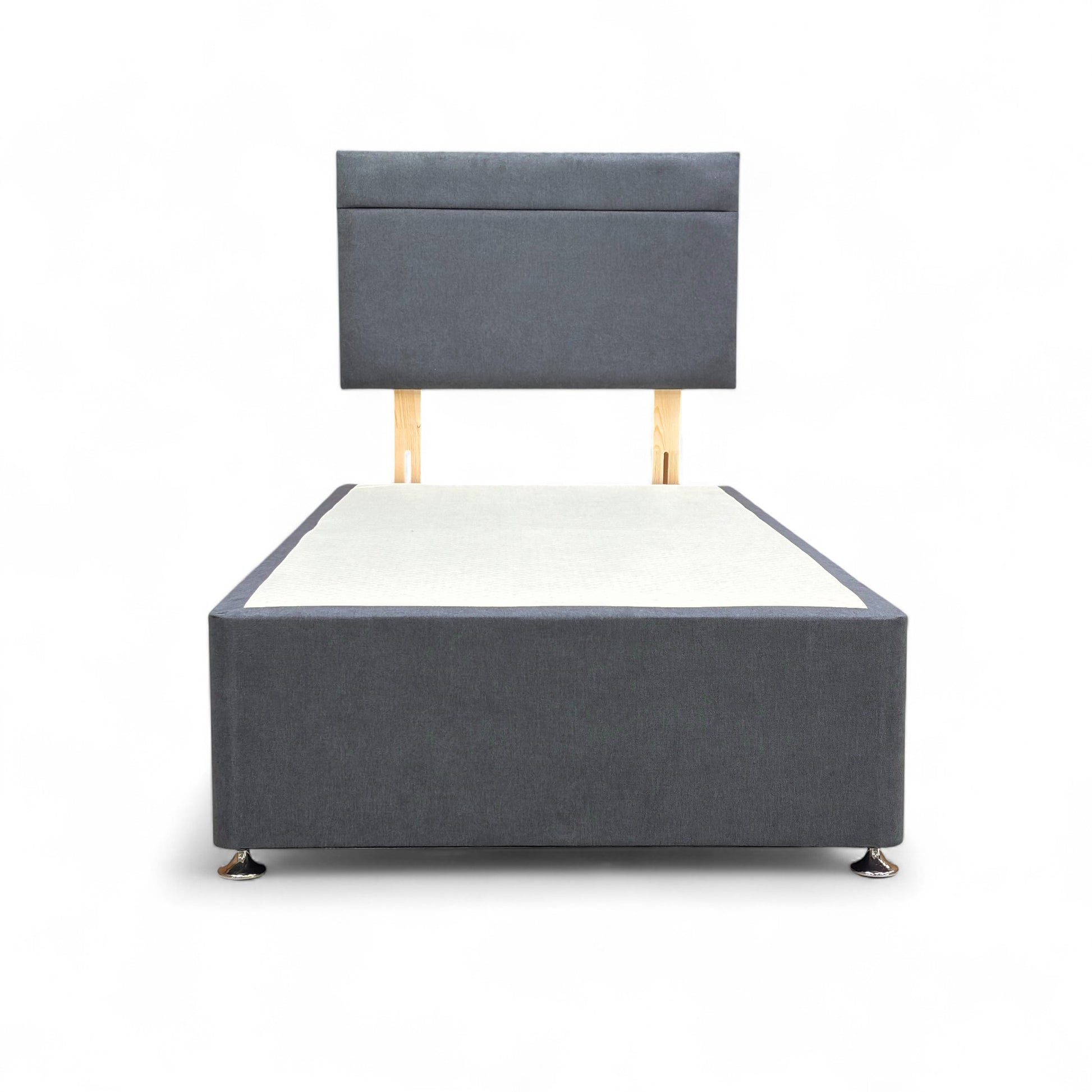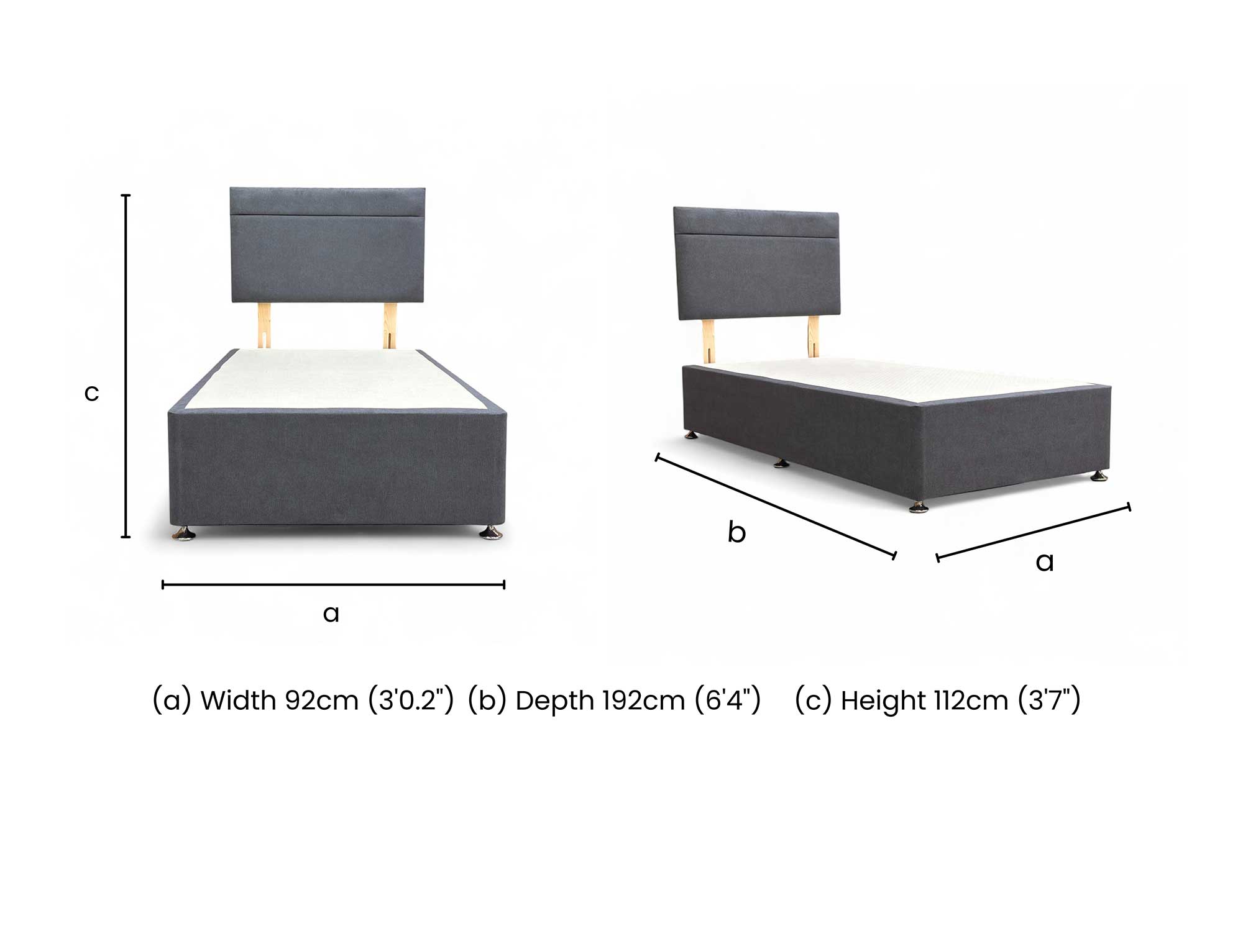 - With a sleek design featuring a solid pattern and uphlostered finish, this bed set includes a headboard height of 112 cm and a divan base single.