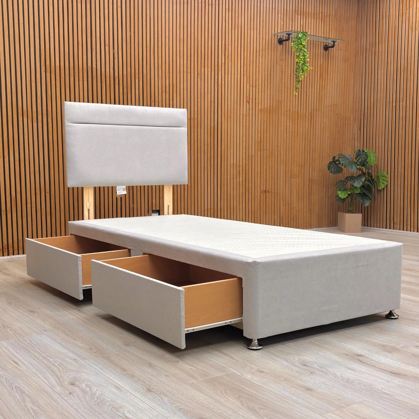 ‘Capella' Venice Silver Velvet Headboard + 2 Draw Divan Base - Single