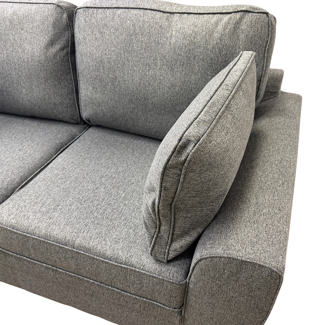 - This modern sofa set features a solid grey colour with a modern back style and a comfortable foam filling, making it perfect for a medium firmness level.