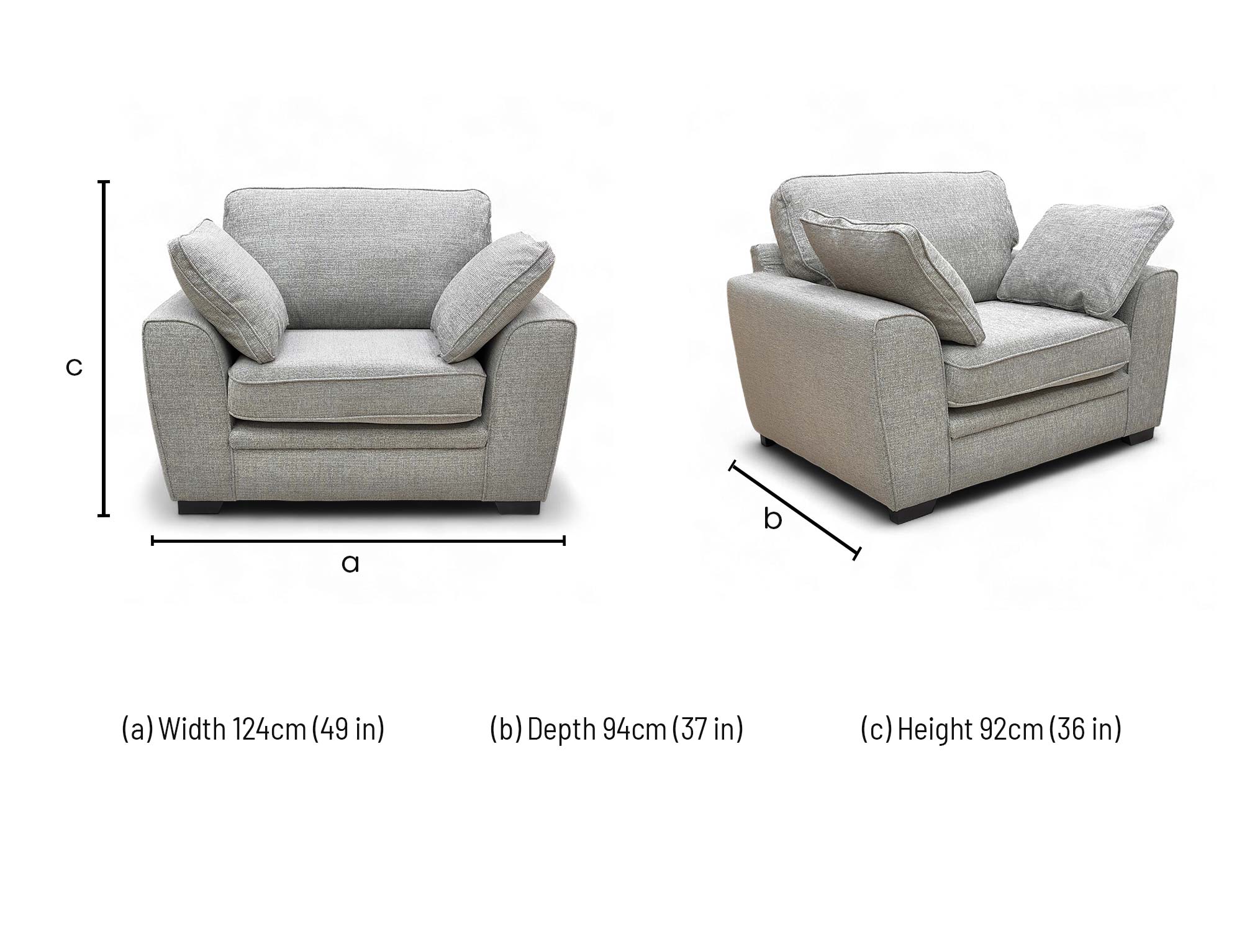• The Sofology 'Chalfont' Armchair in Grey Sort Silver Woven Fabric with Cushions is a brand new piece of furniture designed for modern living spaces.