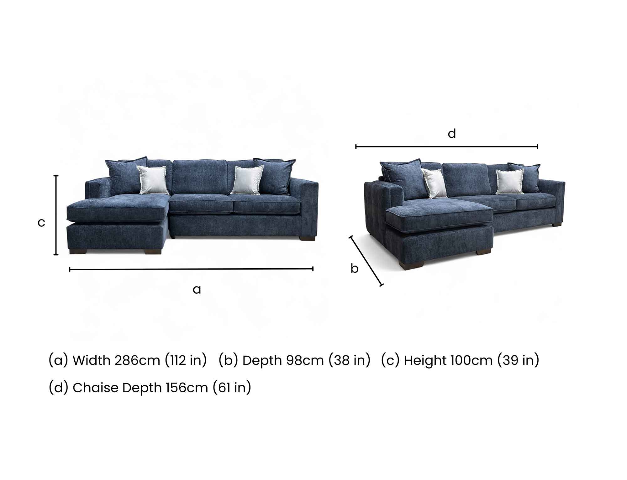 ‘Chelsea’ Navy Blue Paso Chenille Fabric Large Left Hand Facing Open End Corner Chaise
