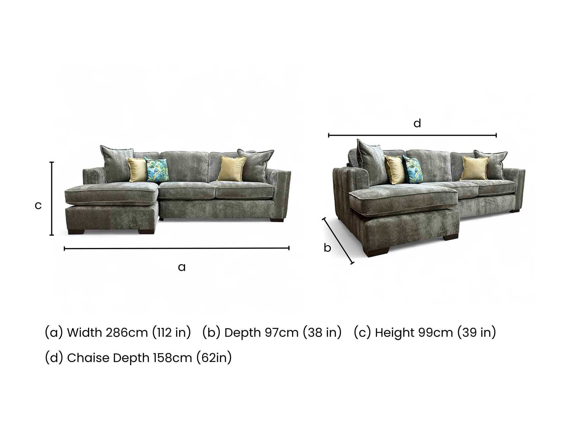 ‘Chelsea' Sage Green Derwent Soft Weave Fabric Large Left Hand Facing Open End Corner Chaise