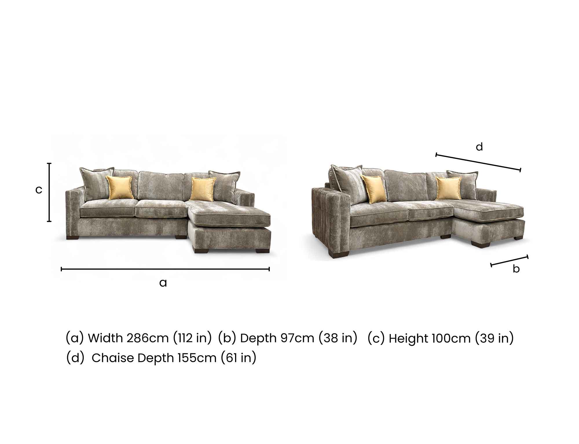 | Width | Depth | Height | Chaise Depth |