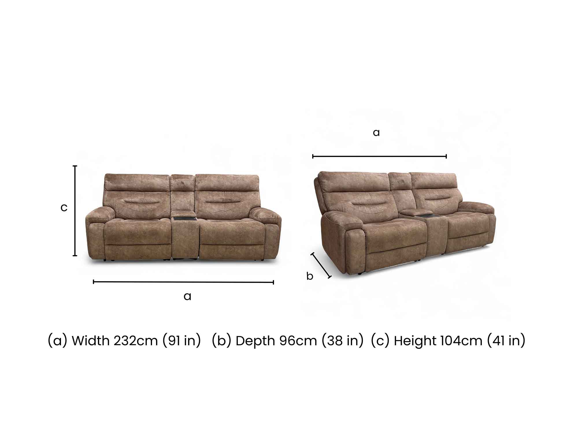 ‘Cinemax' Be-0105 Marble Classic Brown Velvet Media 3 Seater Power Recliner Sofa with Power Headrests