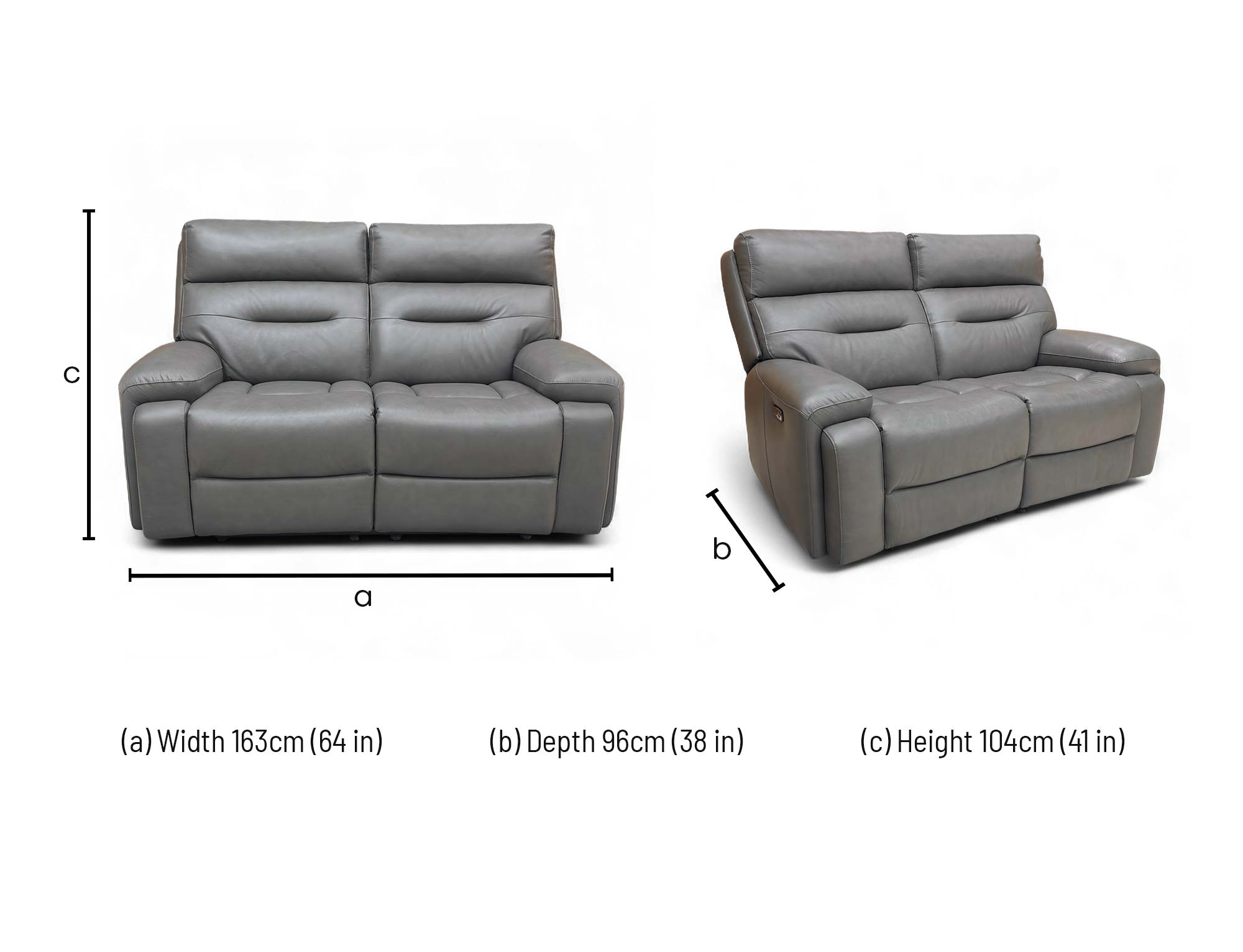 ‘Cinemax' Grey Le-9308 Leather 2 Seater Power Recliner Sofa with Power Headrests