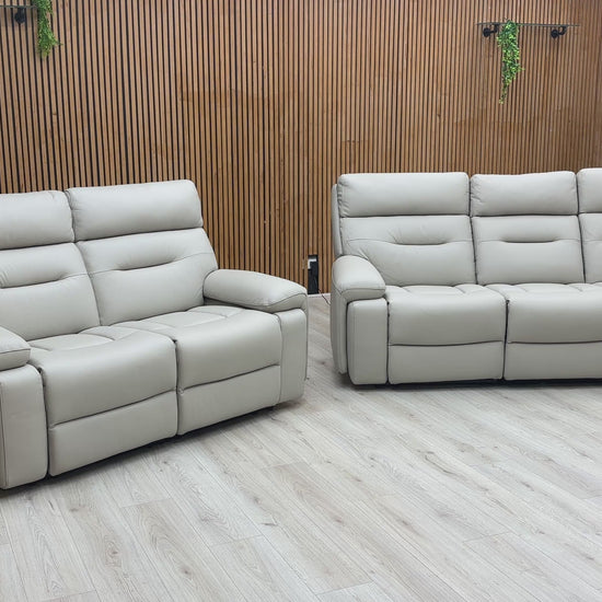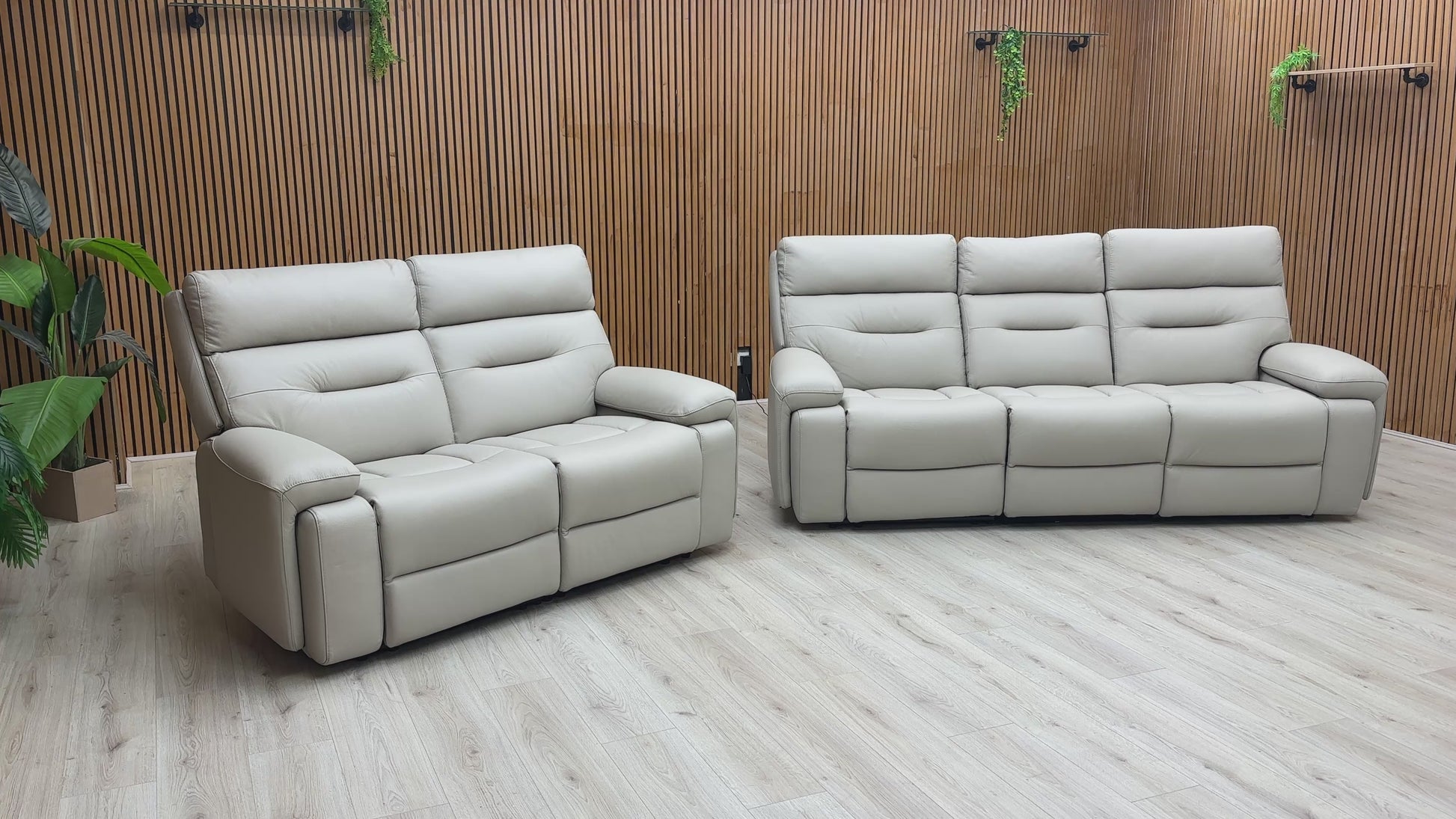 - The Furniture Village 'Cinemax' 3 + 2 Sofa Power Recliner in grey leather is a stylish and comfortable addition to any living room.