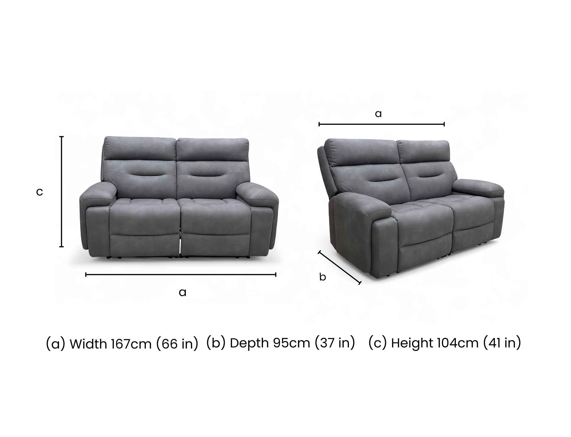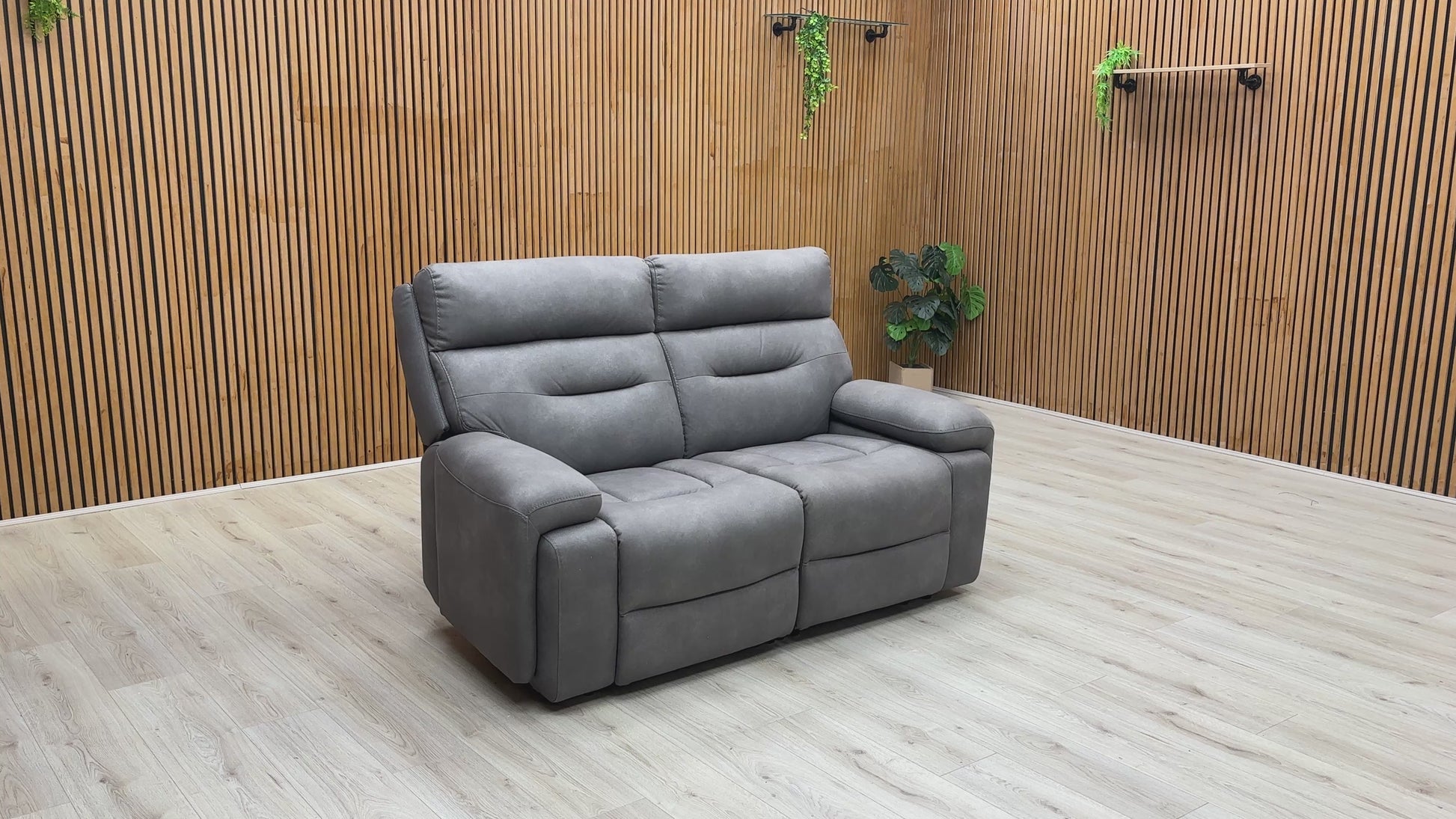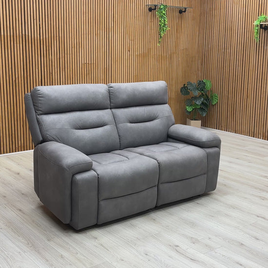 ‘Cinemax' Np-1107 Nappa Grey Fabric 2 Seater Power Recliner Sofa with Power Headrests and Media Arms