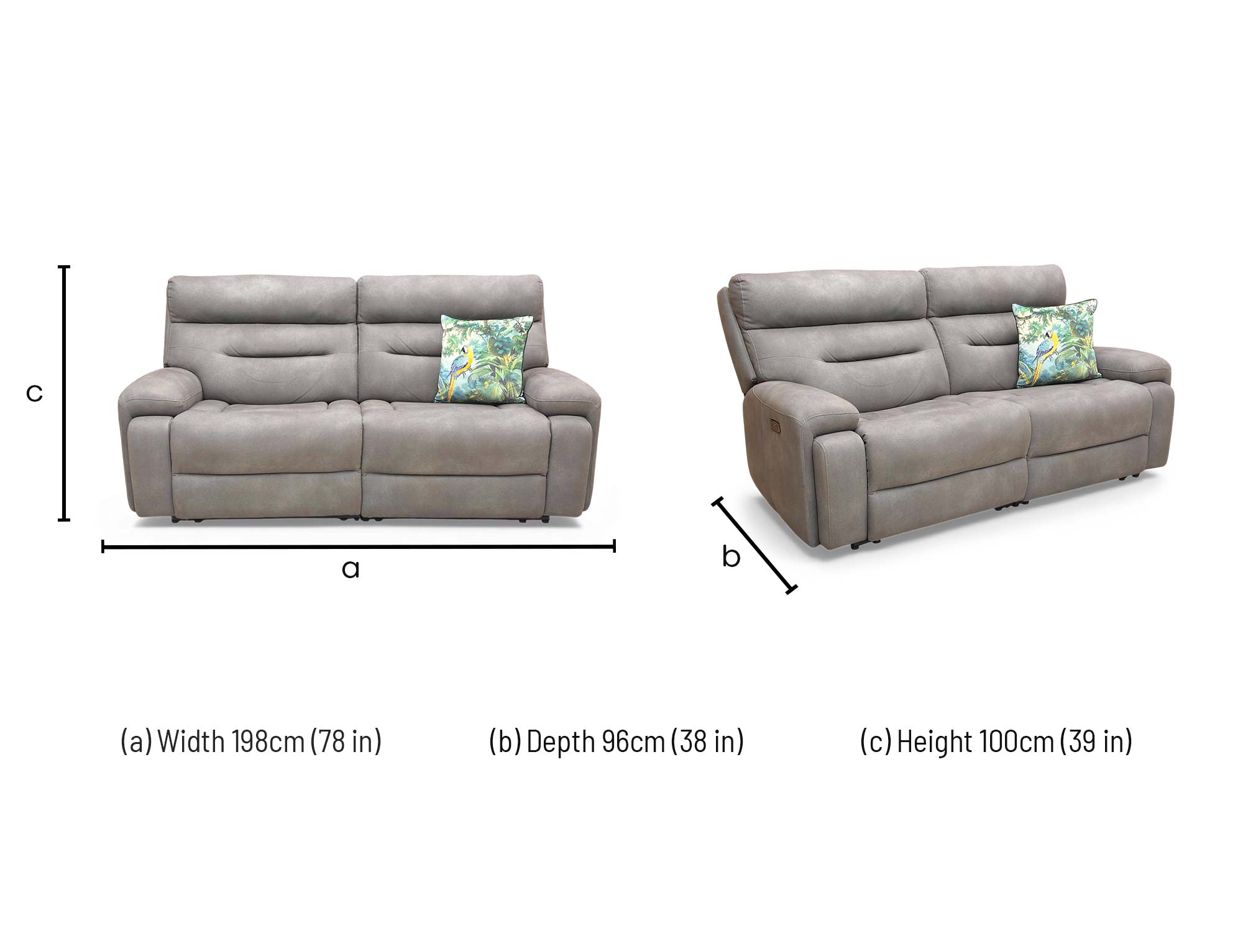 ‘Cinemax’ Np-1107 Nappa Grey Fabric 3 Seater Power Recliner Sofa with Power Headrests