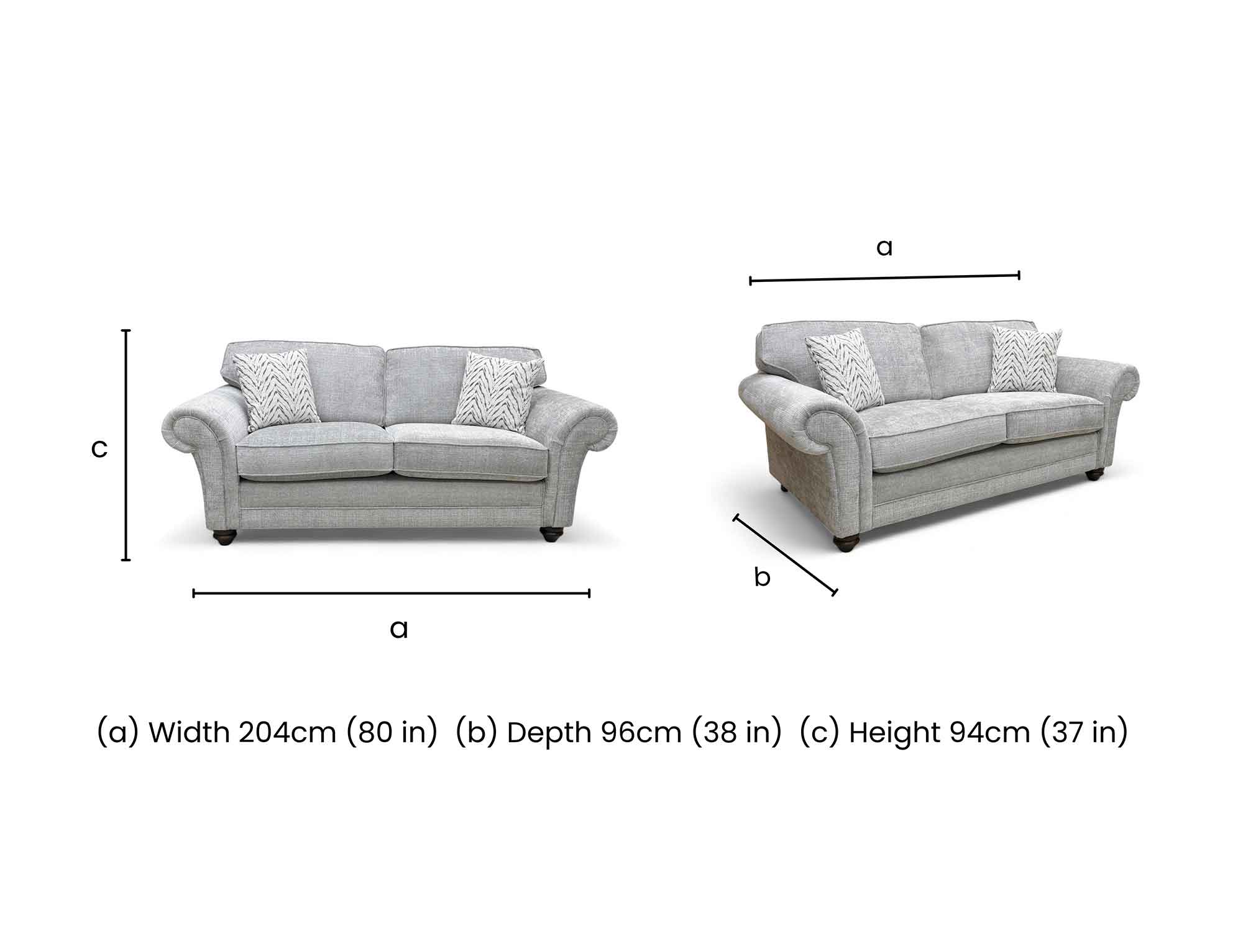 ‘Clara’ Silver Woven Fabric 3 Seater Sofa