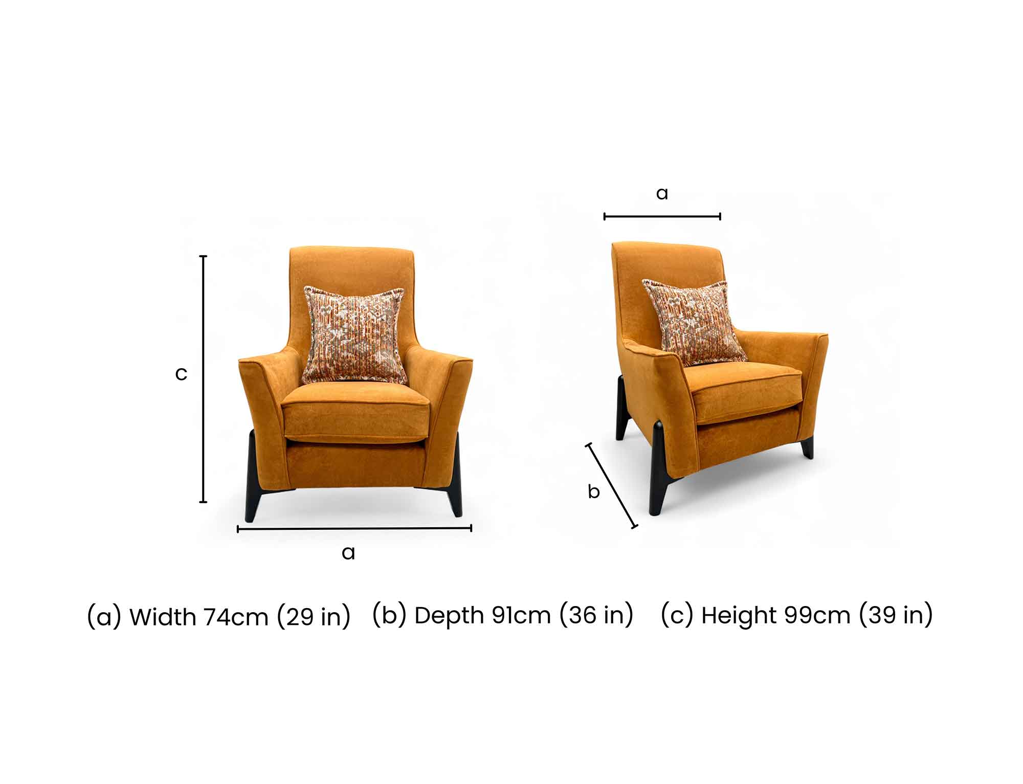 • The 'Collins' Armchair in Almond Orange is a stylish and modern addition to any bedroom, living room, or home office.