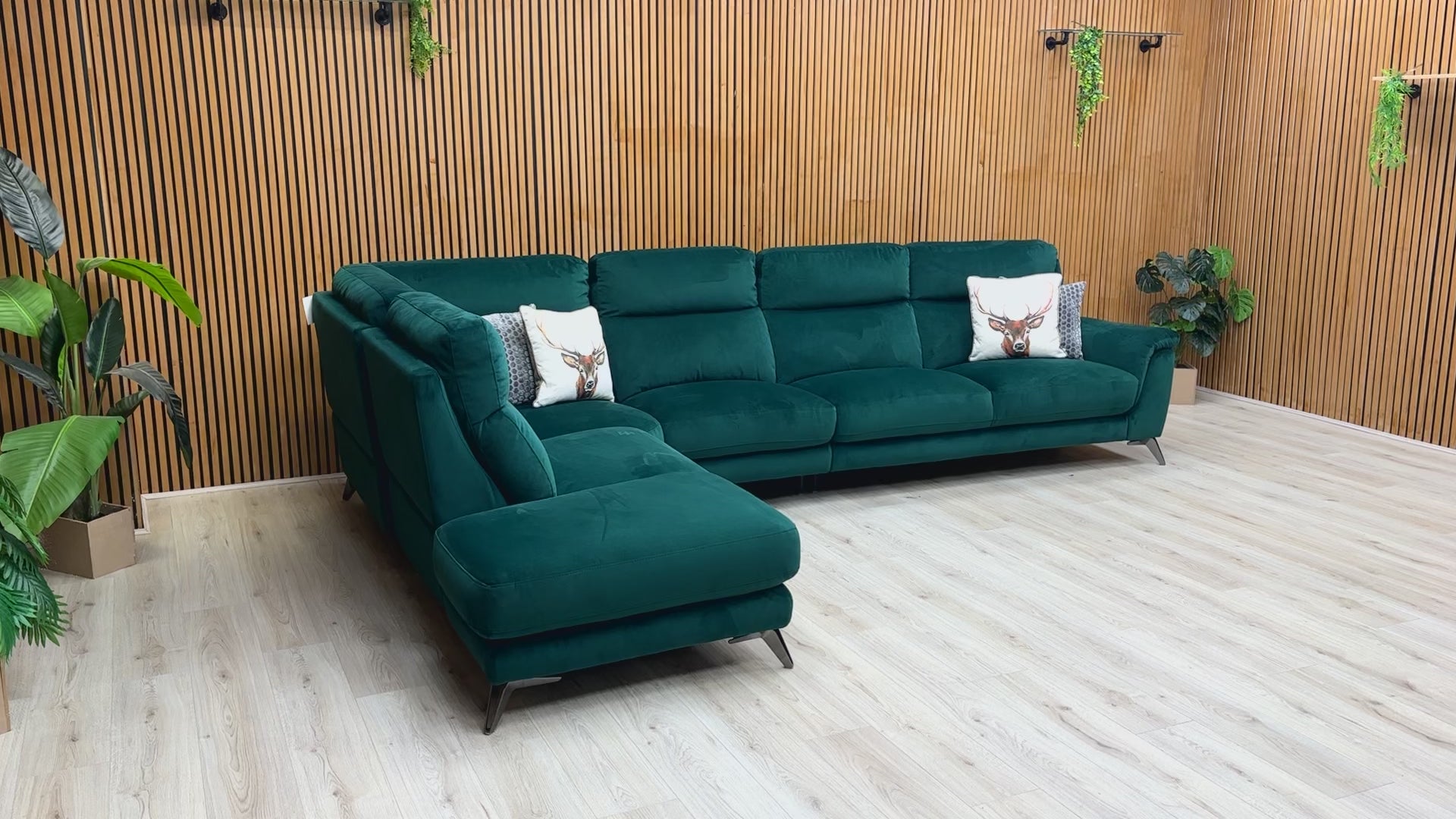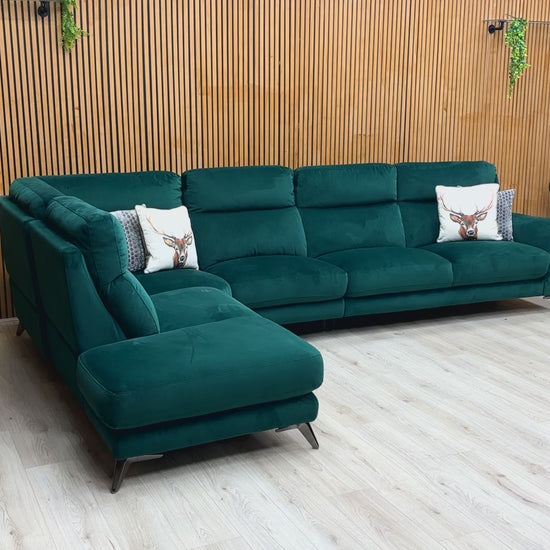 'Contempo' Fab-Meo-R37 Emerald Green Velvet Left Hand Facing Open Chaise End Corner Sofa + Armless Unit