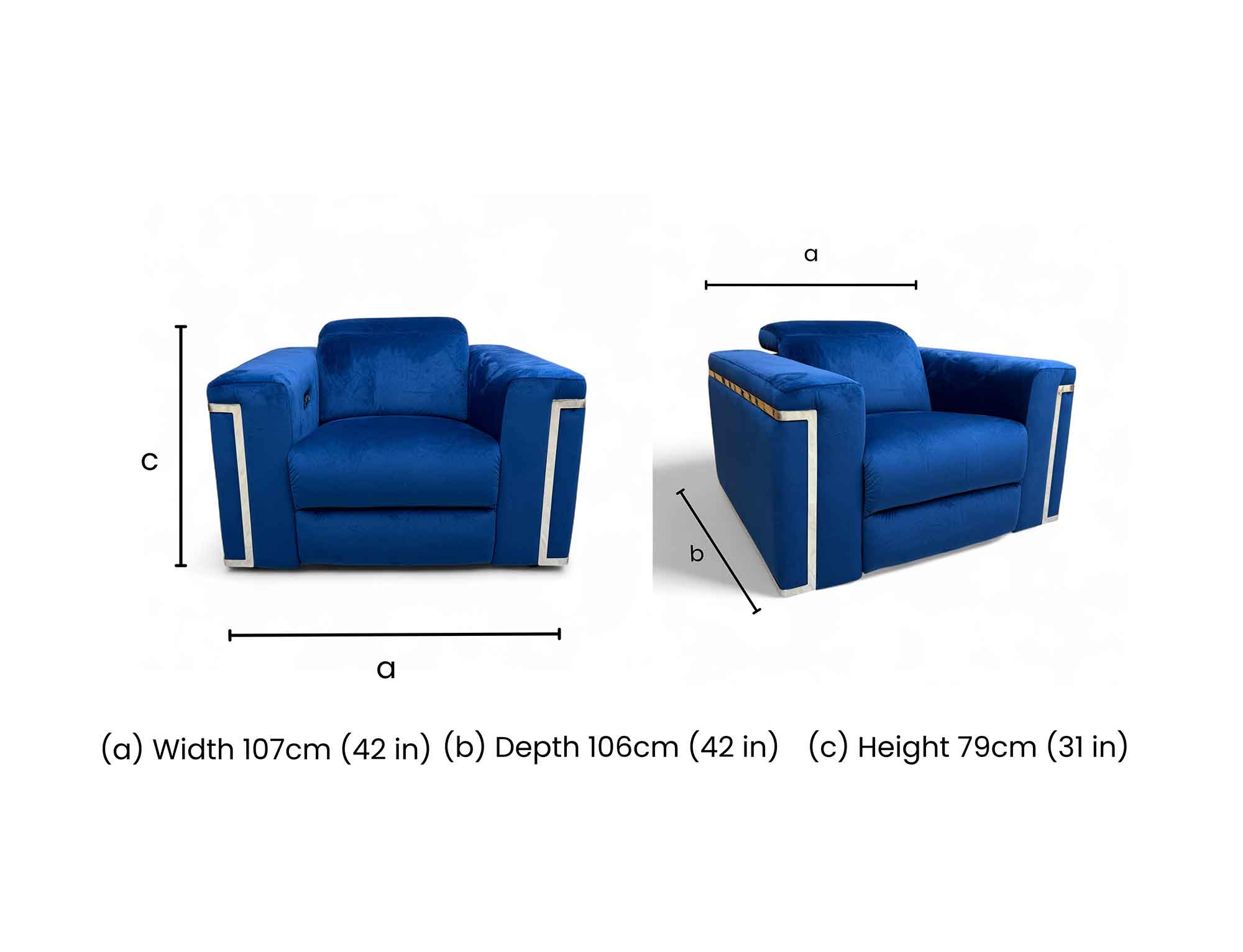 'Cora' Royal Blue Velvet Power Recliner Armchair with Power Headrest