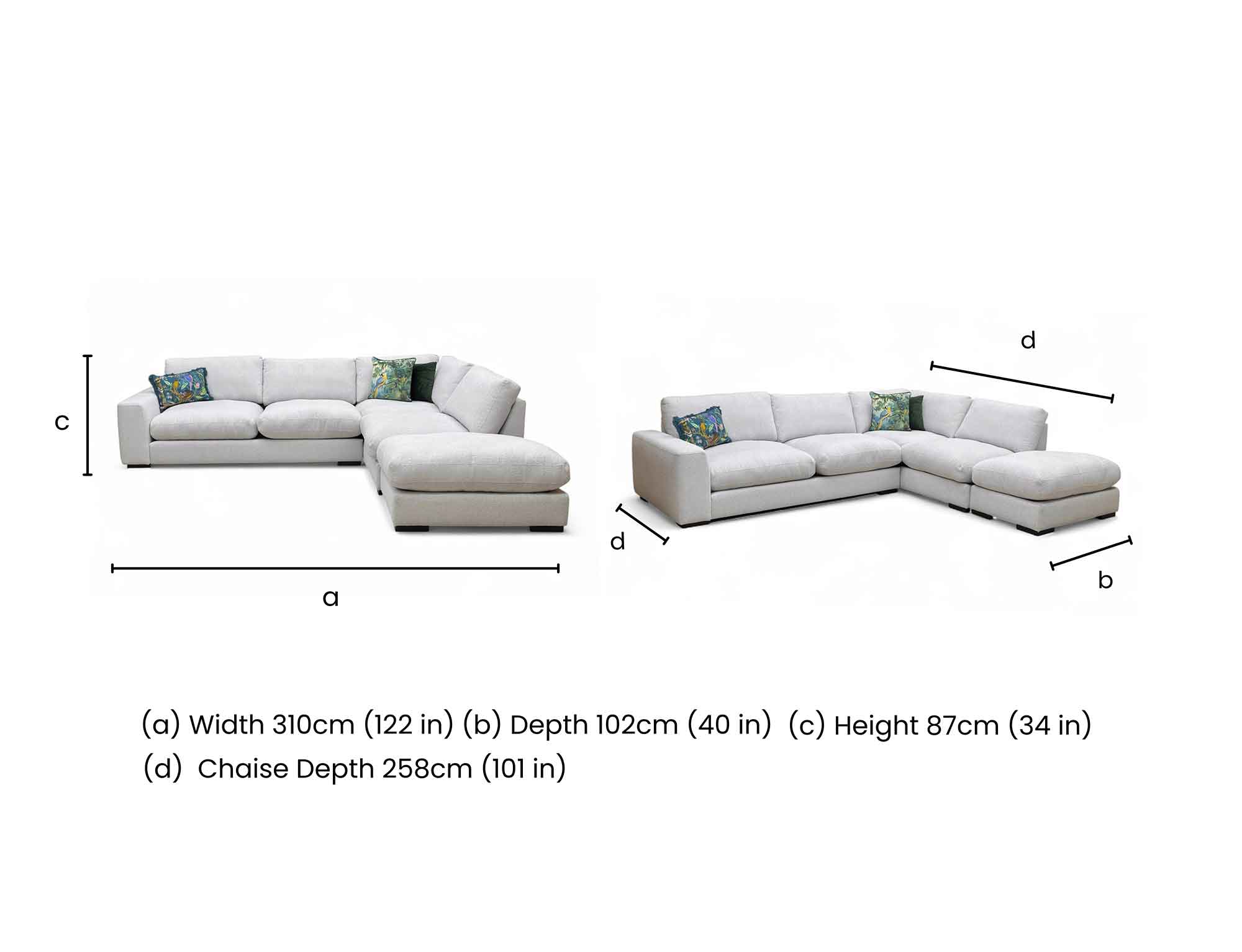 ‘Corey’ Ivory Chord Fabric Large 3 Seater Open End Chaise Corner Sofa