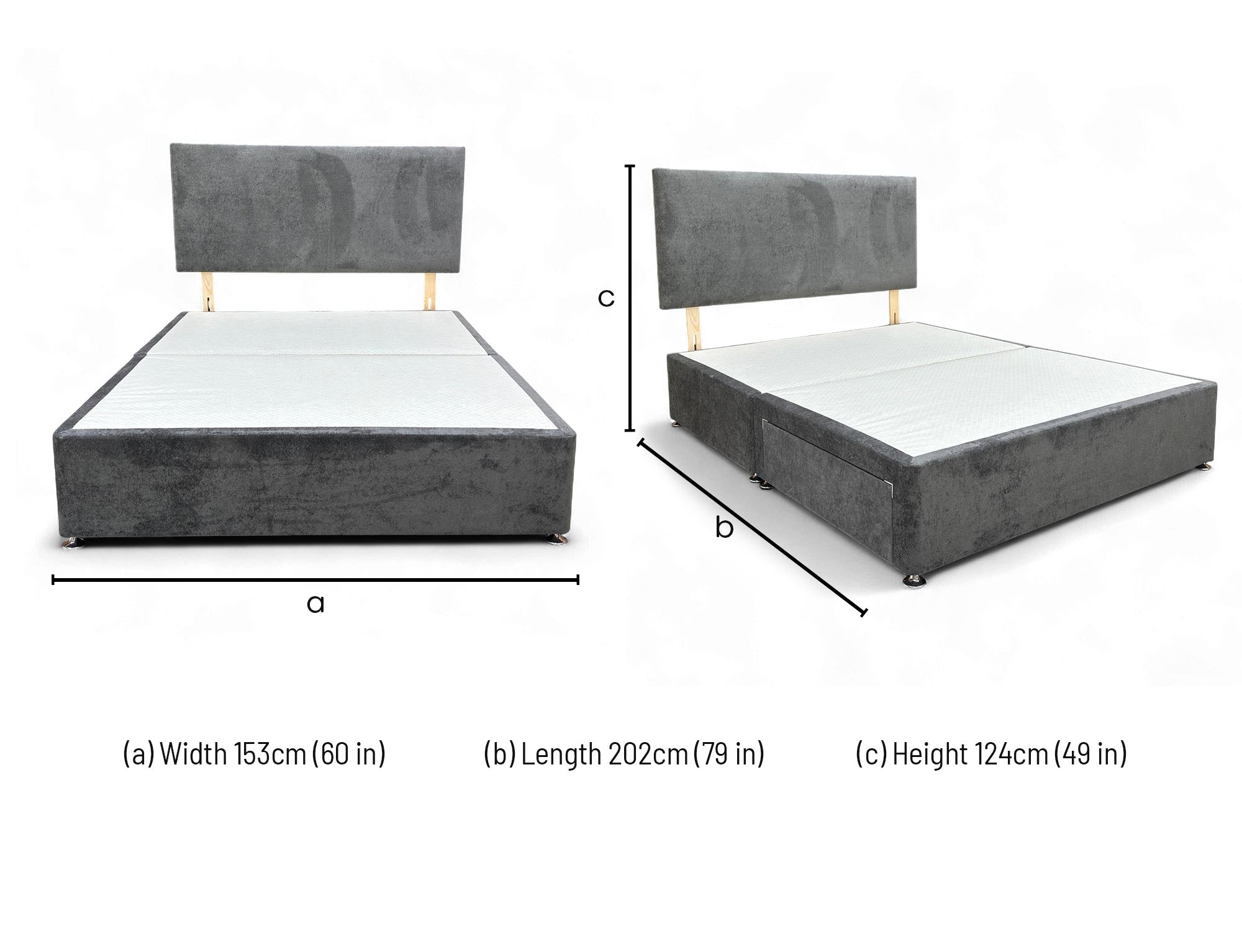 • The Furniture Village ‘Dahl’ Plush Grey Velvet Headboard + 2 Draw Divan Base in King size offers a luxurious and contemporary addition to any bedroom.