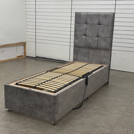 ‘Dice’ Marble Dapple Grey Electrical Adjustable Bed + Floor Standing Headboard - Single