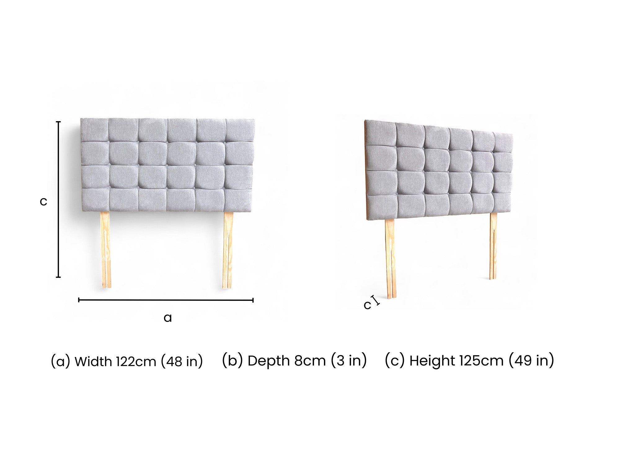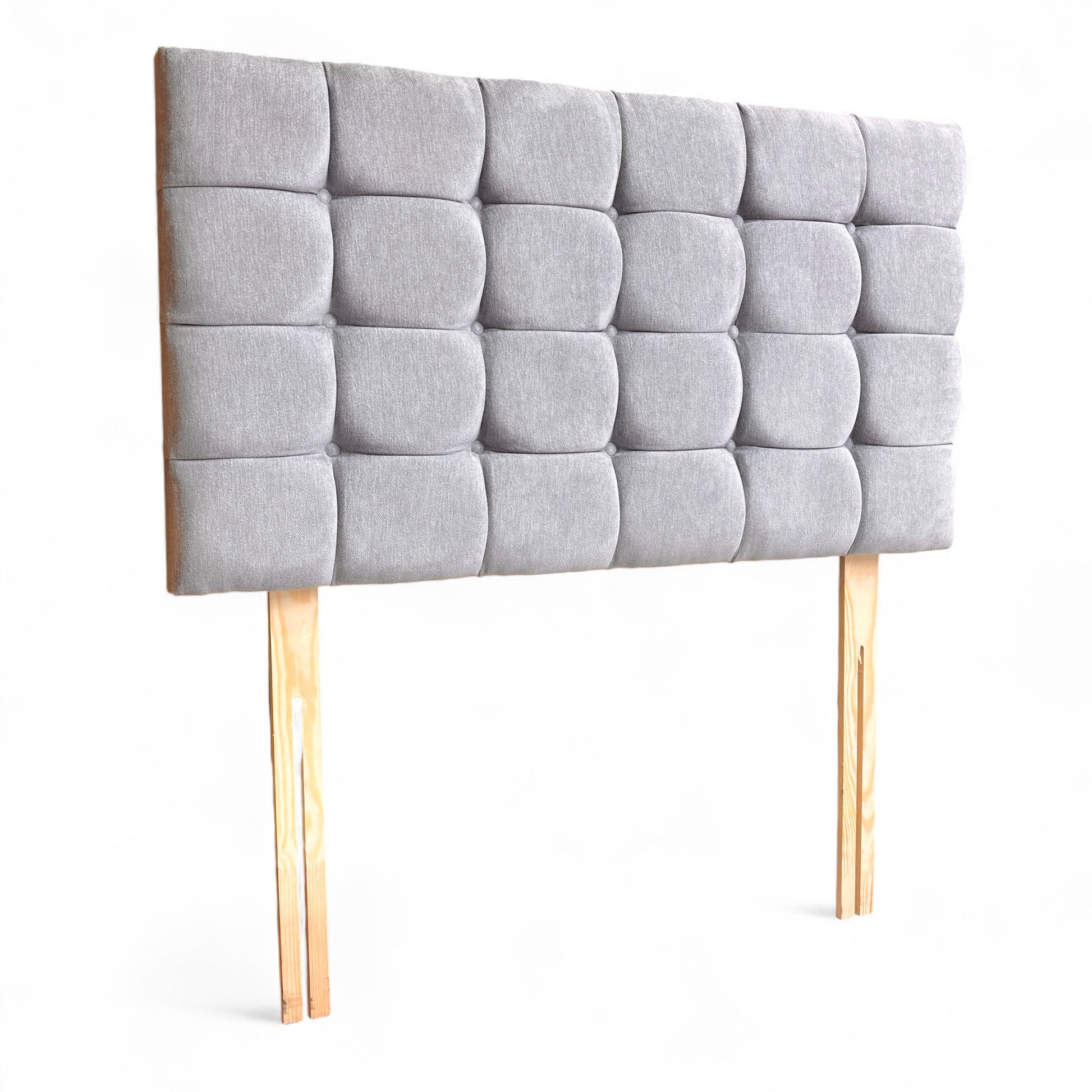 - The Furniture Village ‘Dice’ Plain Diamond Strutted Headboard in grey fabric is a modern and stylish addition to any bedroom.