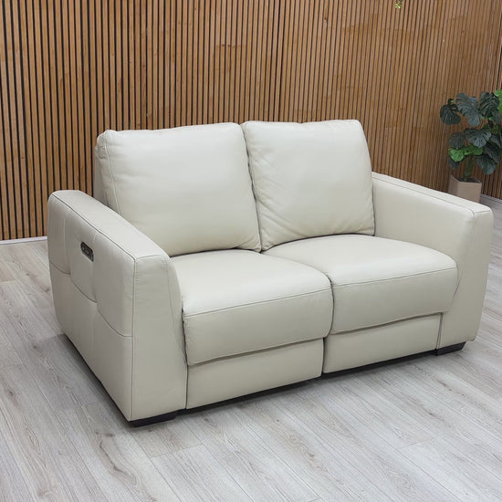 ‘Dinky’ Bone China Cream Cat-60/05 Leather 2 Seater Power Recliner Sofa