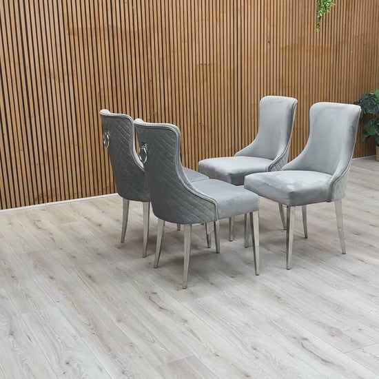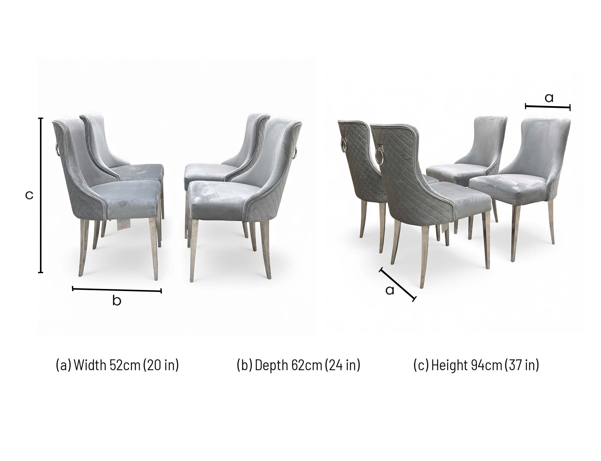 ‘Dolce’ Grey Velvet Knocker Handle Dining Chair - Set of 4