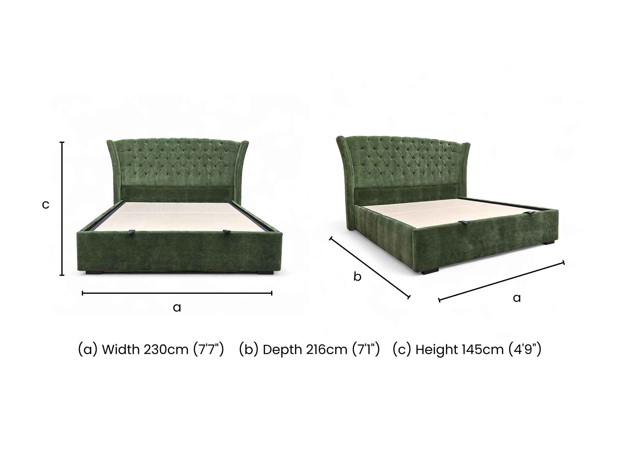 ‘Dorian’ Aston Moss Fabric Floor Standing Headboard + End Lift Ottoman Bed Frame - Super King