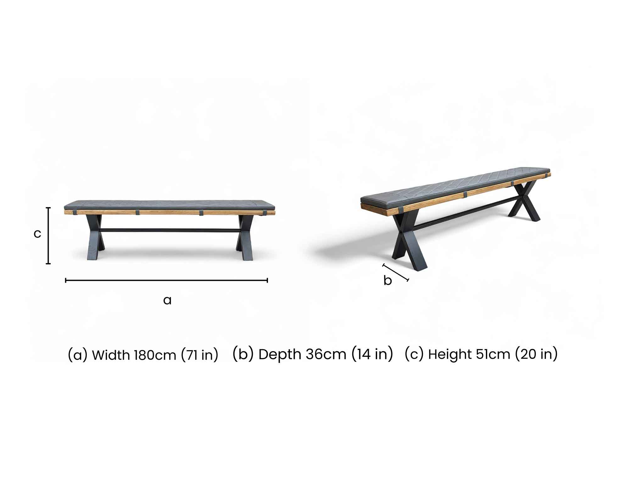 ‘Earth’ Solid Oak 180cm Dining Bench with Metal X-Shaped Legs + Grey Faux Leather Bench Pad