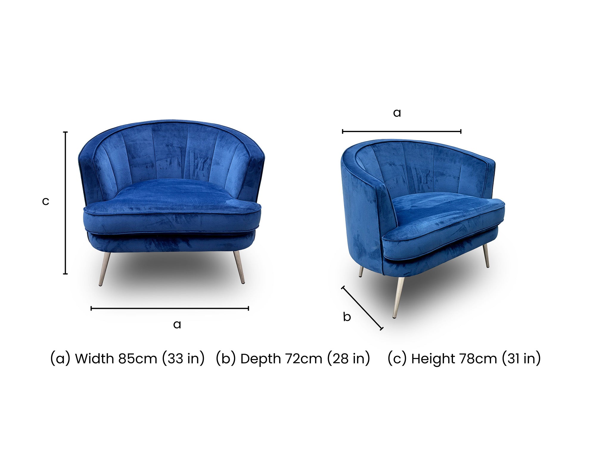 - The chair has a high back design with classic round arm style, upholstered in soft velvet fabric in a beautiful blue colour.