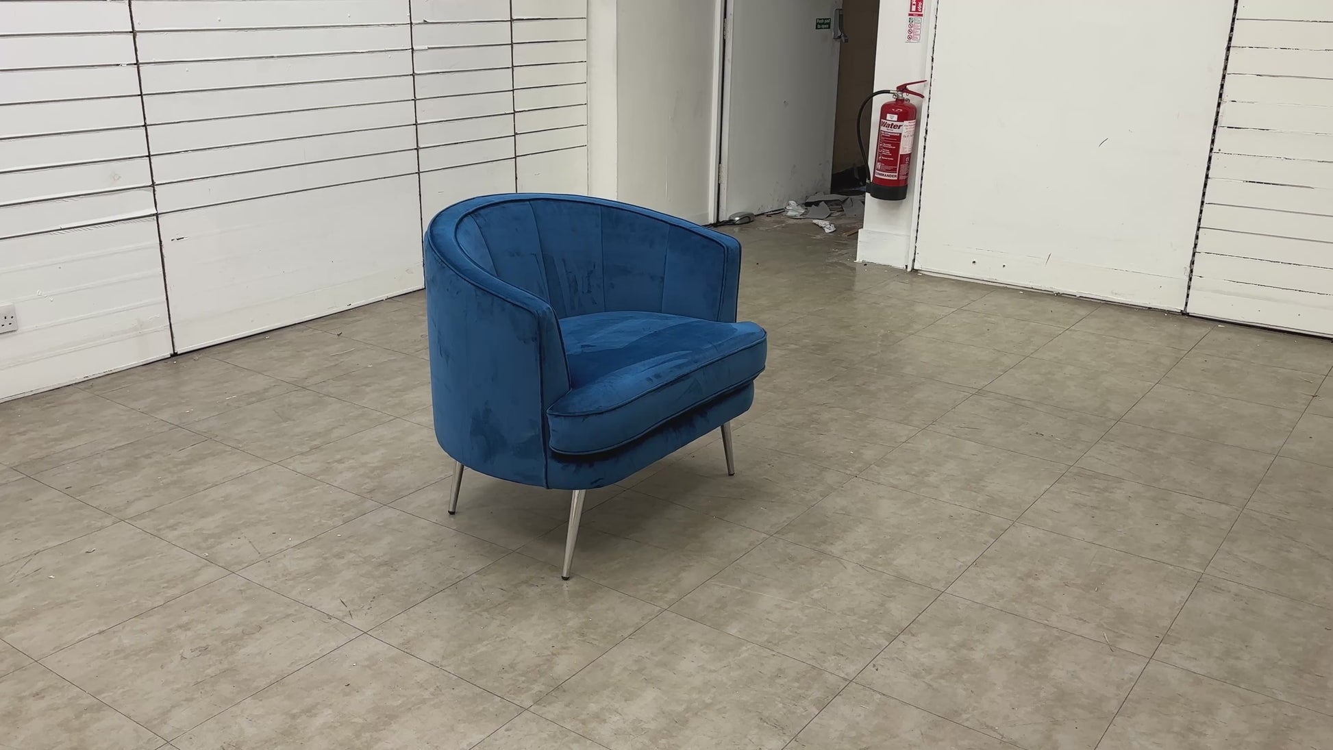 - The chair has a high back design with classic round arm style, upholstered in soft velvet fabric in a beautiful blue colour.