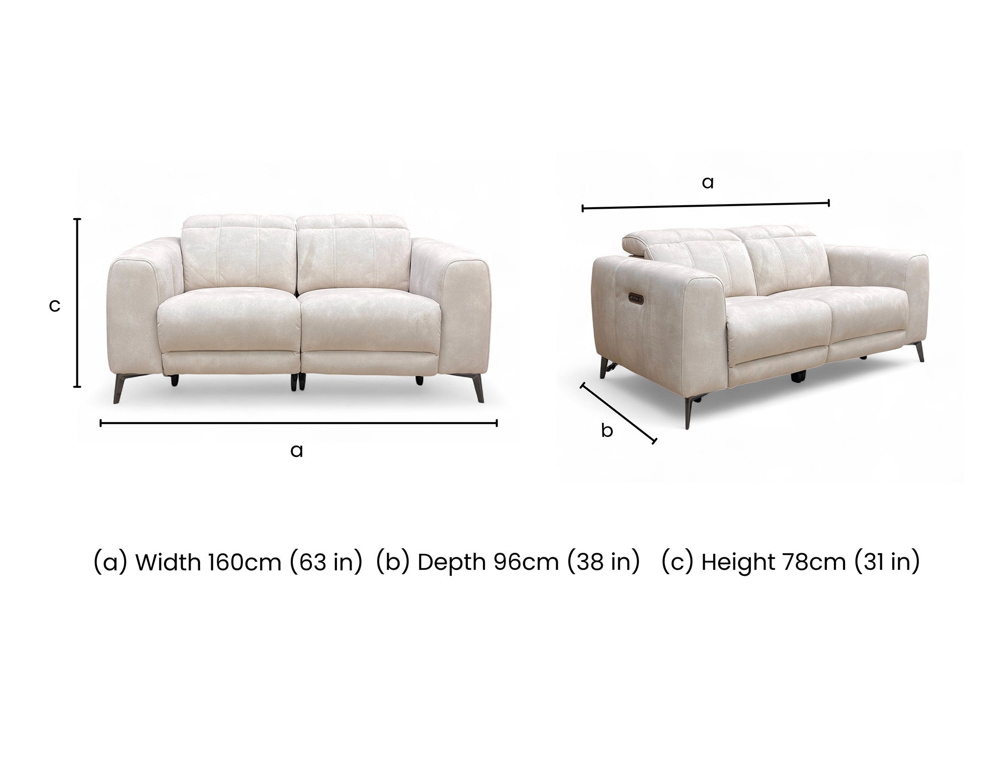 'Ezra' Dexter 43501 Ivory Velvet 2 Seater Power Recliner Sofa with Power Headrests