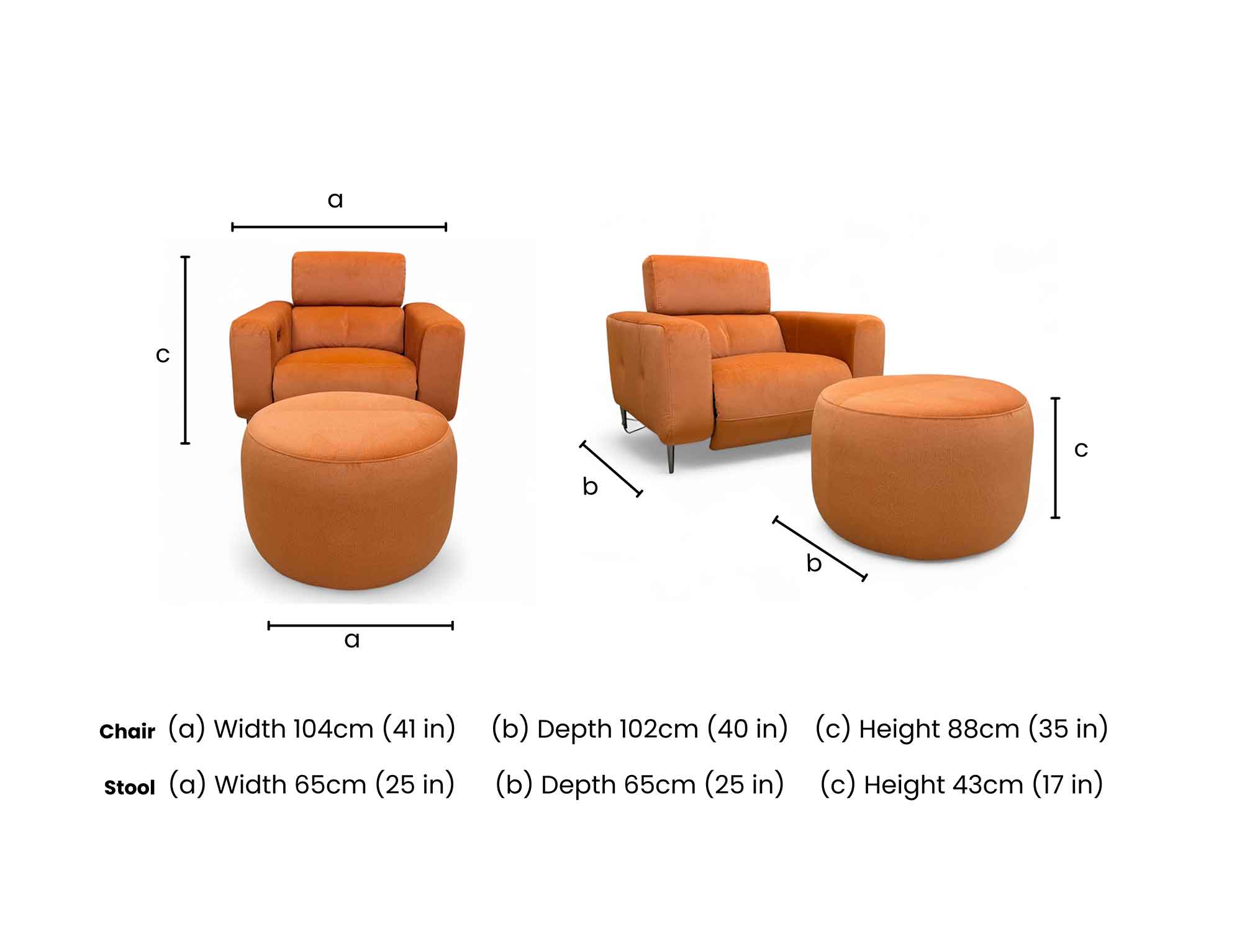 'Ezra' Rust Orange Velvet Power Recliner Chair with Telescopic Headrest + Round Footstool