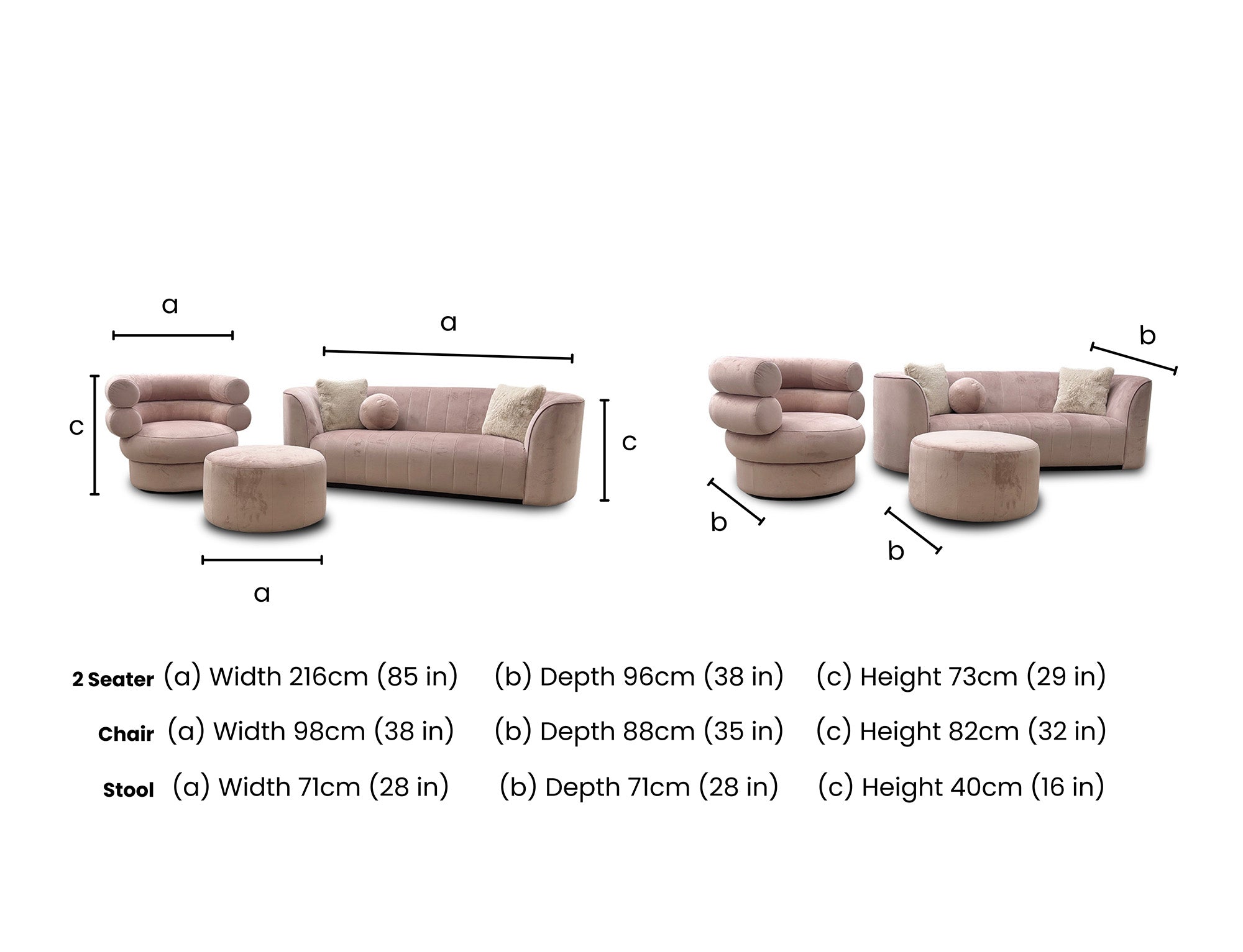 • The velvet upholstery fabric in a beautiful blush colour adds a touch of luxury to the overall look, making this sofa set a perfect choice for those seeking a sophisticated and comfortable seating option.