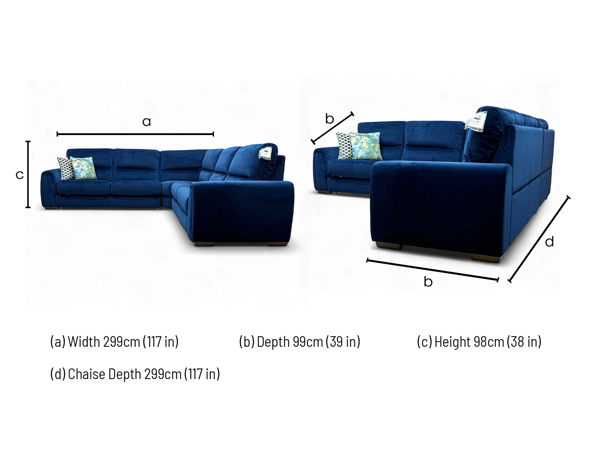 'Flex' Fab-Meg-R28 Navy Velvet Large Corner Sofa Bed with Power Recliner and Storage Arms
