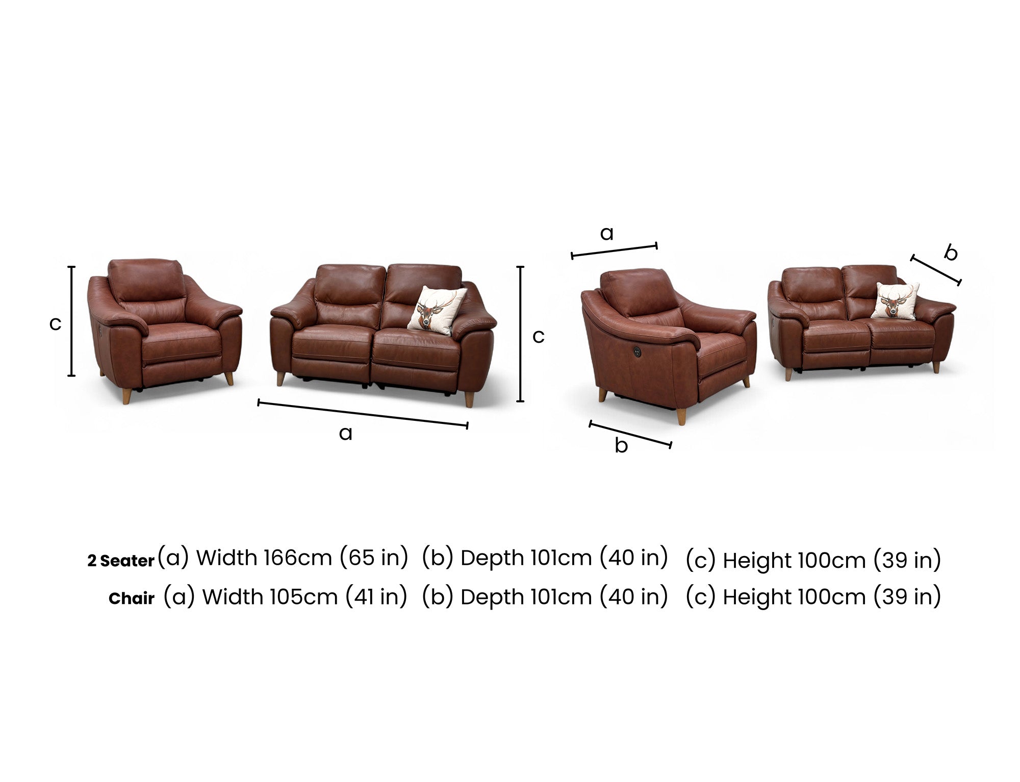 ‘Francis' Butterscotch Leather 2 Seater Power Recliner Sofa + Power Recliner Armchair