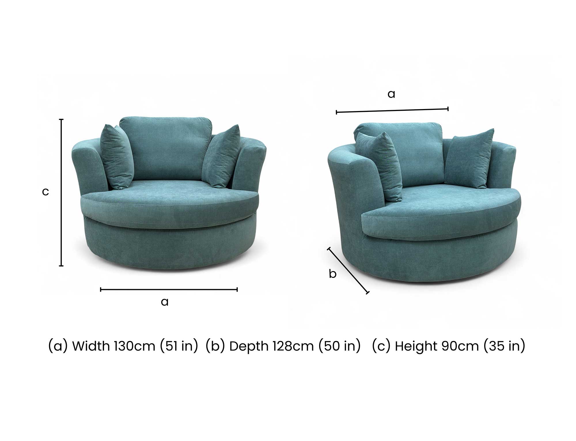 ‘Freya’ Ocean Blue Freya Fabric Large Swivel Chair