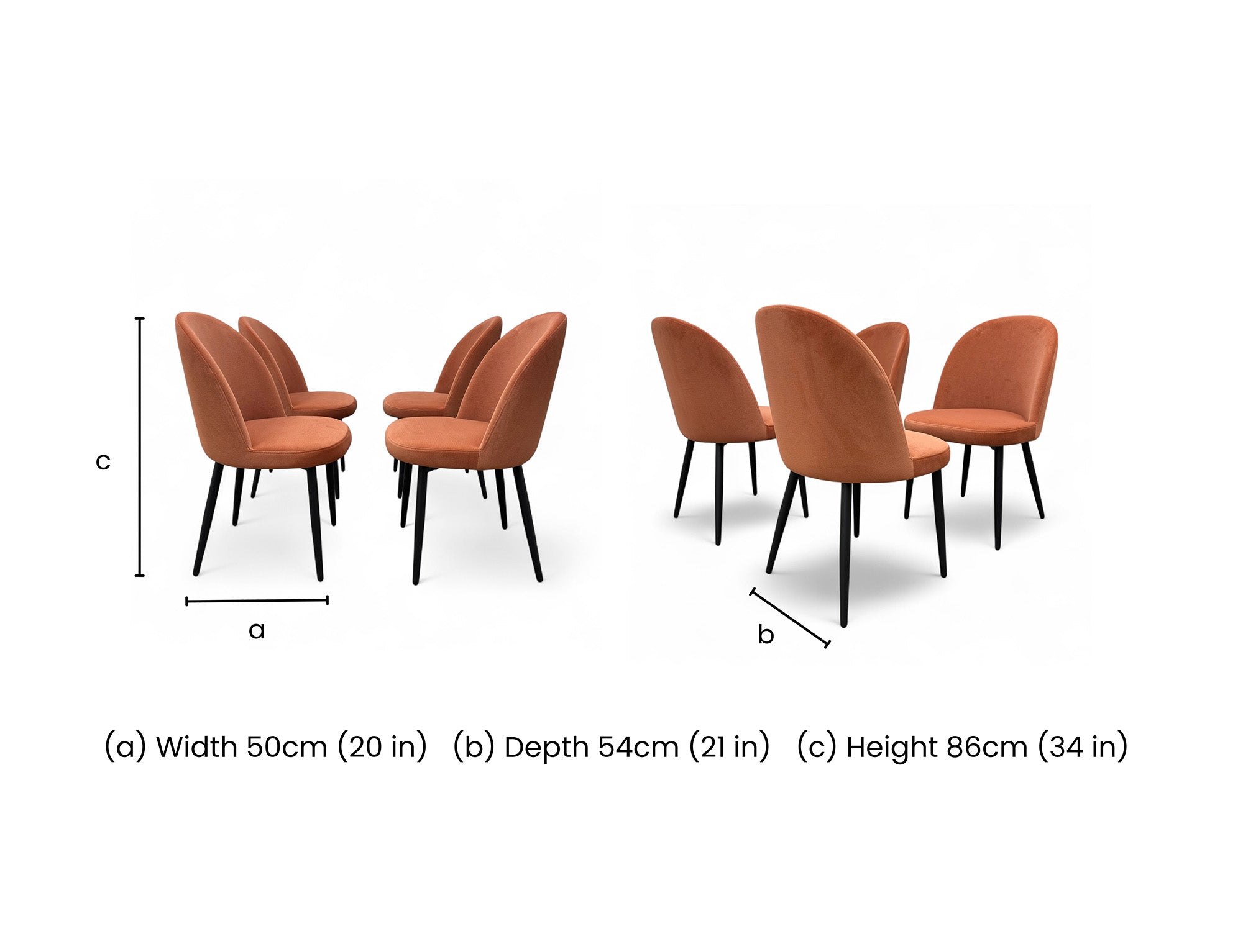 The 'Gabi' Coral Velvet Dining Chair set of four features plush coral velvet upholstery that brings a sophisticated pop of color to your dining space. Designed with both comfort and style in mind, these chairs offer sturdy construction paired with soft cushioning for lasting support during meals. Ideal for modern interiors, this set delivers refined elegance while enhancing the overall dining experience.