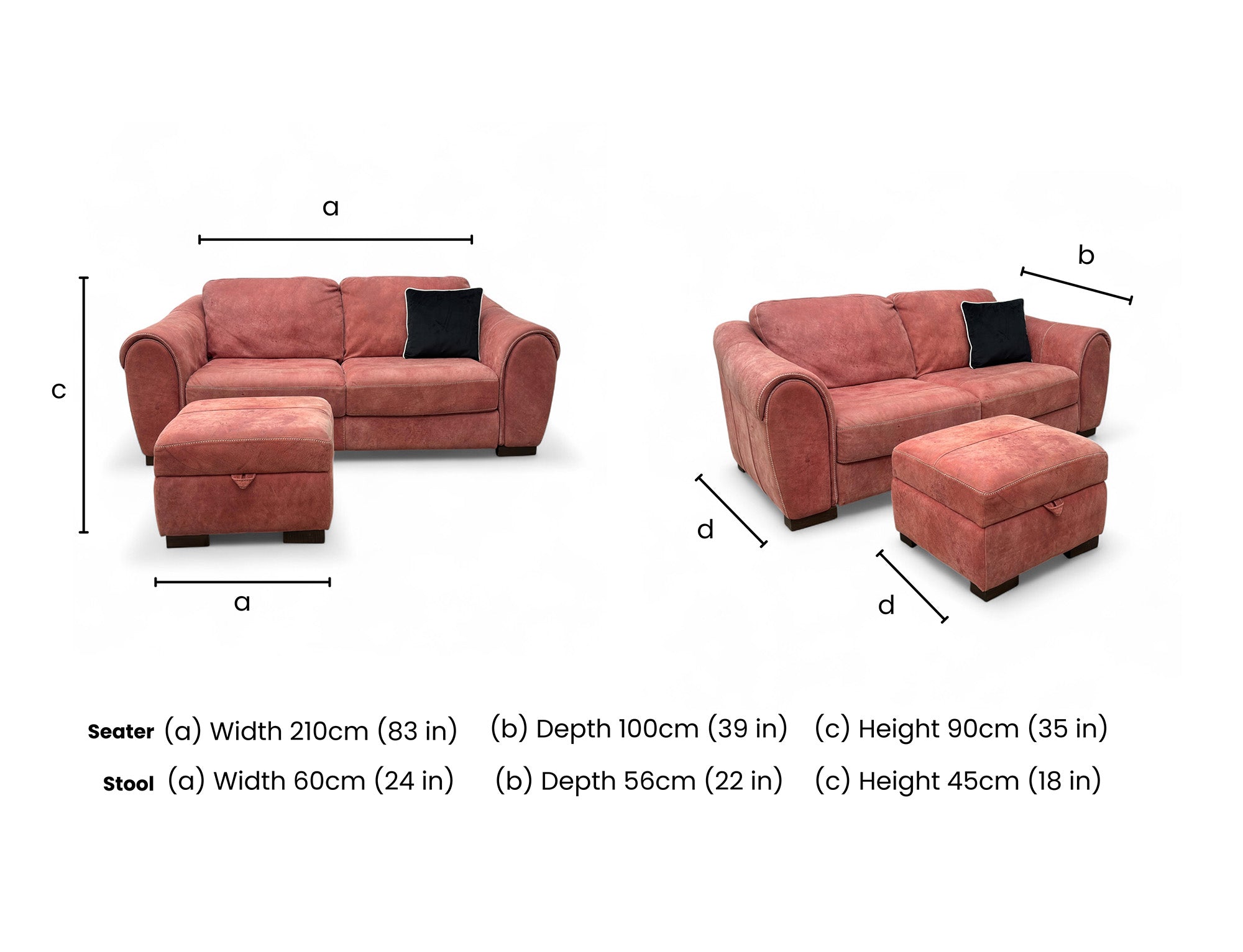 ‘Galleria’ Salmon Pink Leather 3 Seater Sofa + Small Storage Footstool