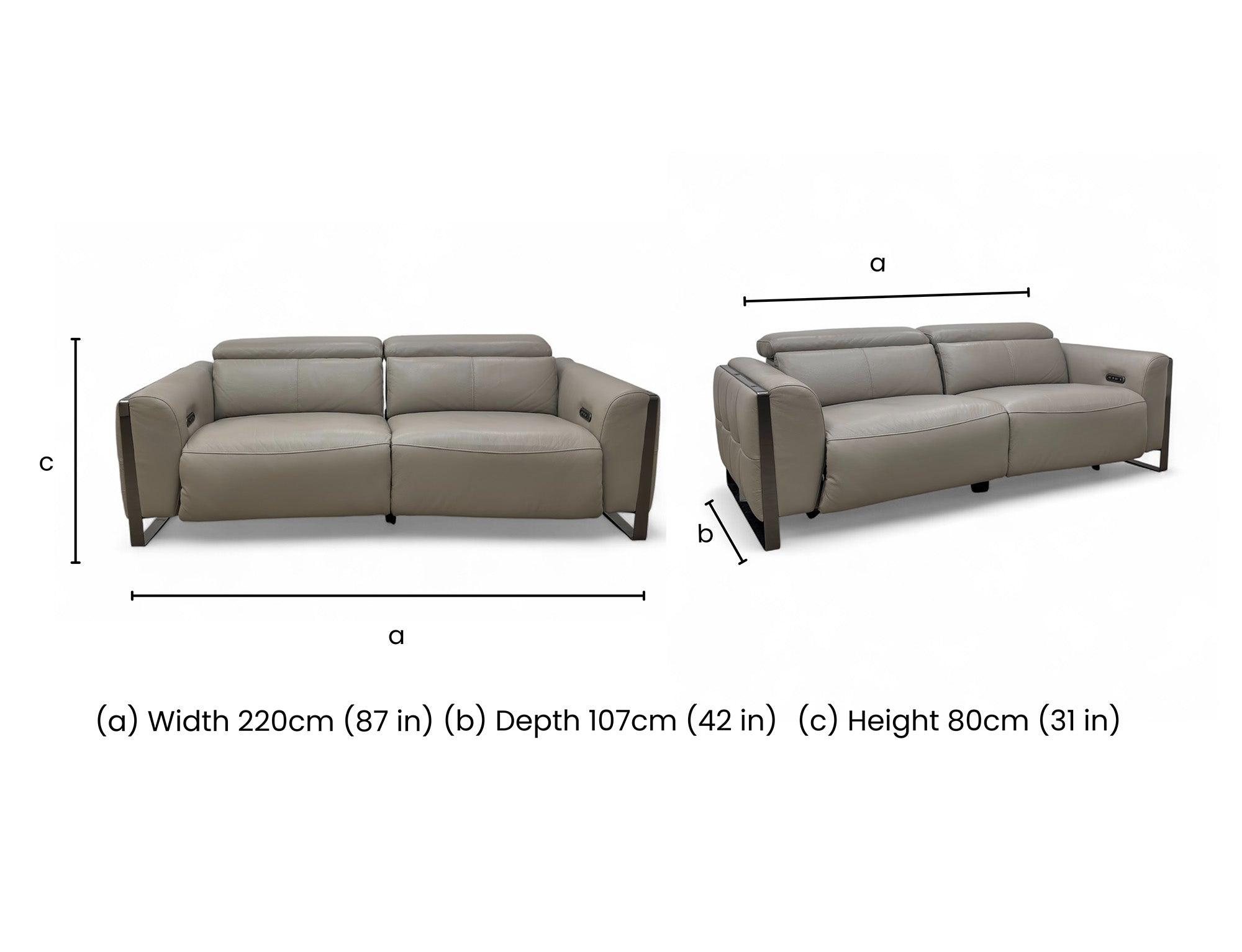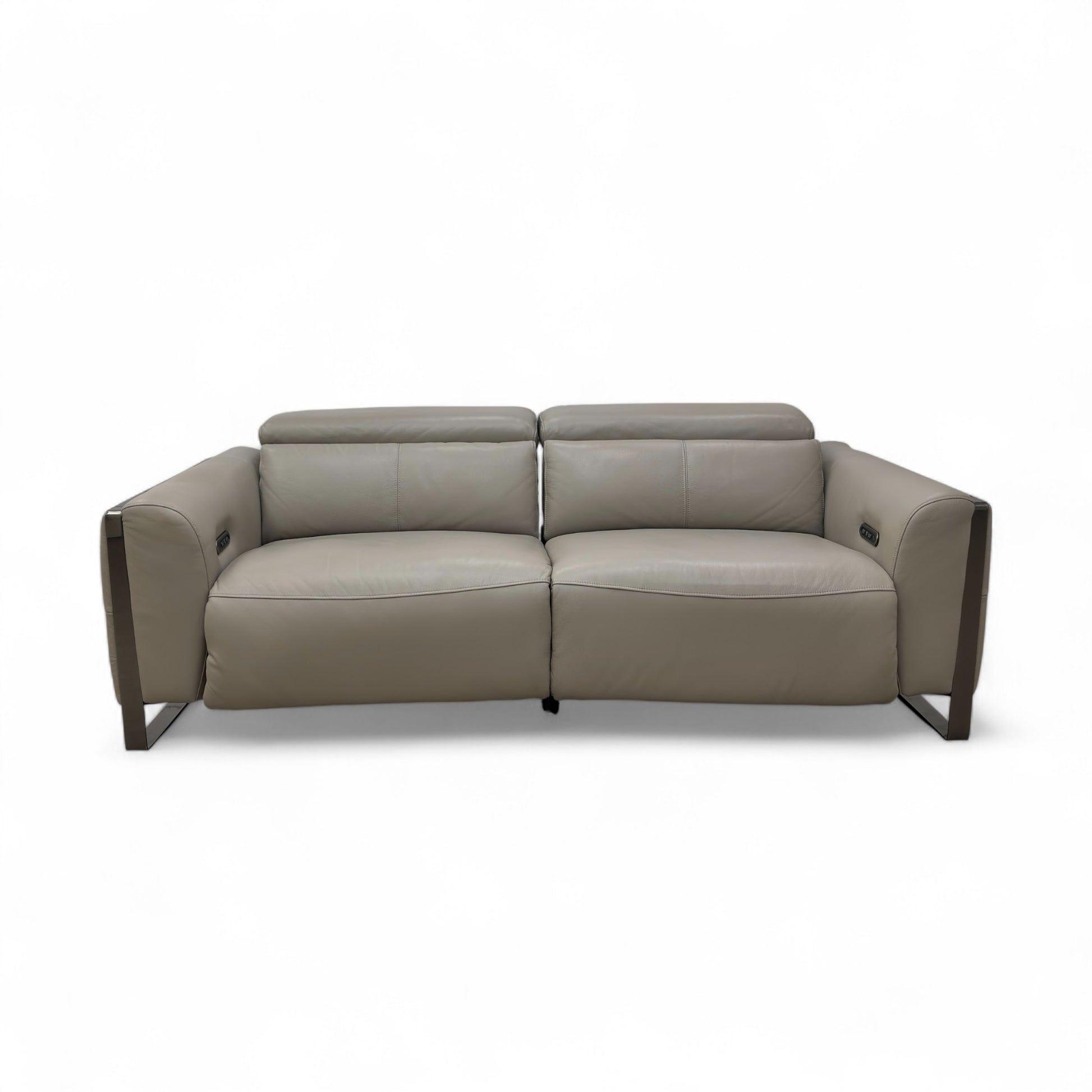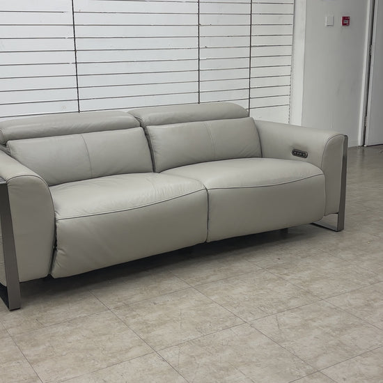 ‘Gisella’ New Grey Cat-60:28 Leather 3 Seater Power Recliner Sofa with Power Headrests